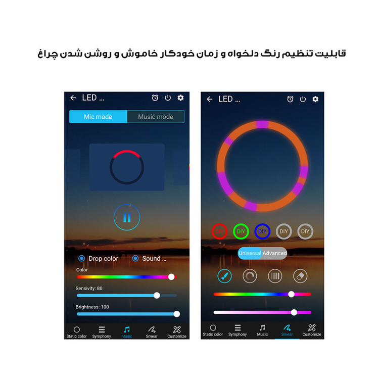 آباژور هوشمند فیبولایت محصولی مدرن و خاص است که ترکیبی شگفت انگیز از هنر و روشنایی را با آن تجربه می کنید. قابلیت های اصلی این آباژور هوشمند شامل - کنترل نور و افکت ها با اپلیکیشن موبایل - هزاران رنگ جذاب و صدها افکت نوری - قابلیت کم و زیاد کردن شدت نور (دیمر) - رقص نور بر اساس صدای محیط یا موزیک داخل گوشی -خاموش و روشن شدن دستگاه با تنظیم روز، ساعت و دقیقه - شخصی سازی نور و افکت متناسب با سلیقه و فضای محیط. این آباژور با طراحی مینیمالیستی خود کمترین فضا را اشغال کرده استفاده از این آباژور هوشمند باعث می شود با هزینه ای مناسب و بدون تجهیزات اضافی، محیط اطراف خود از قبیل سالن پذیرایی، اتاق خواب، اتاق کودک، دفتر کار، استودیو یوگا، آتلیه عکاسی، سالن های آرایش و زیبایی، باشگاه ورزشی، استودیو آهنگسازی، گیم نت ها و... را خاص و متمایز کنید. به لطف تولید این محصول در گروه روشنایی فیبولایت، کیفیت ساخت بسیار بالای این آباژور قابل رقابت با نمونه های خارجی است که با نگاه نزدیک و نصب در محیط، متوجه ظرافت ساخت خواهید شد و قابل مقایسه با نمونه های داخلی نمی باشد.