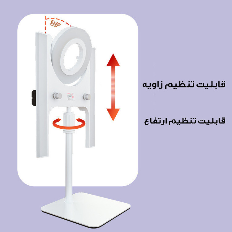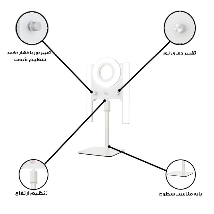 تنظیم ارتفاع ، تنظیم زاویه نور به سمت بالا و پایین تا 30 درجه و دارای نور های افتابی ، مهتابی و ترکیبی و همچنین قابلیت تنظیم دما و شدت نور توان 36 وات و 110V-220V