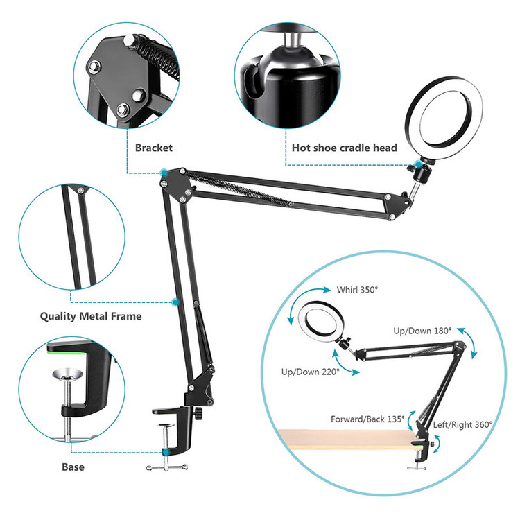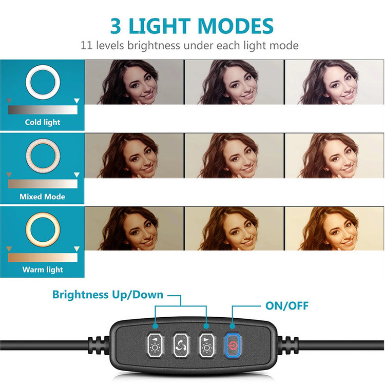 ویژگی ها: طراحی نور LED با 10 روشنایی قابل تنظیم برای انتخاب شما، هر حالت نور دارای 10 روشنایی قابل تنظیم برای انتخاب است، تمام نیازهای شما را در شرایط مختلف برآورده می کند. این نور مناسب روز قابل تنظیم برای از بین بردن هر گونه سایه نامطلوب است.