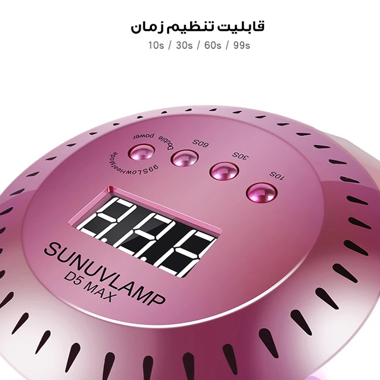دستگاه UV LED SUN D5 MAX دارای ظاهری ساده و زیبا می باشد که کیفیت ساخت قطعات بسیار مناسبی دارد و از قیمت مقرون به صرفه ای برخوردار است، دستگاه یو وی ال ای دی سان ایکس 5 مکس ساخت کشور چین بوده، دارای 45 عدد لامپ UV و LED می باشد که از کیفیت بالایی برخوردارند و در صورت استفاده مناسب دارای طول عمر 50000 ساعتی هستند. سینی کف دستگاه به راحتی قابلیت جدا شدن دارد، میتوان با جدا کردن سینی، از دستگاه برای خشک کردن ژل روی ناخن پا استفاده کرد و همچنین تمیز کردن دستگاه به راحتی امکان پذیر میشود.