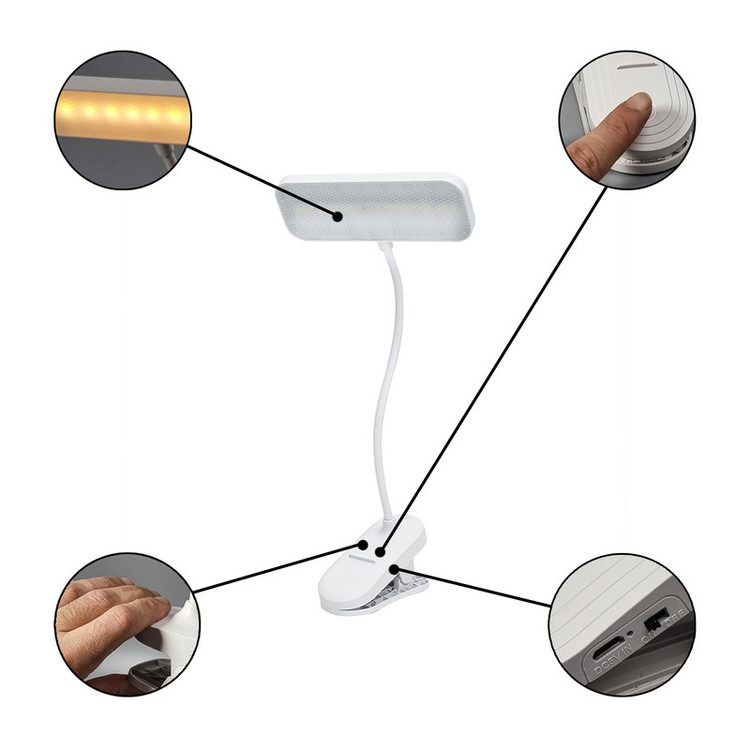 چراغ مطالعه شارژی ، قابلیت تنظیم شدت نور ، دکمه لمسی ، قابلیت تغییر رنگ در سه سطح