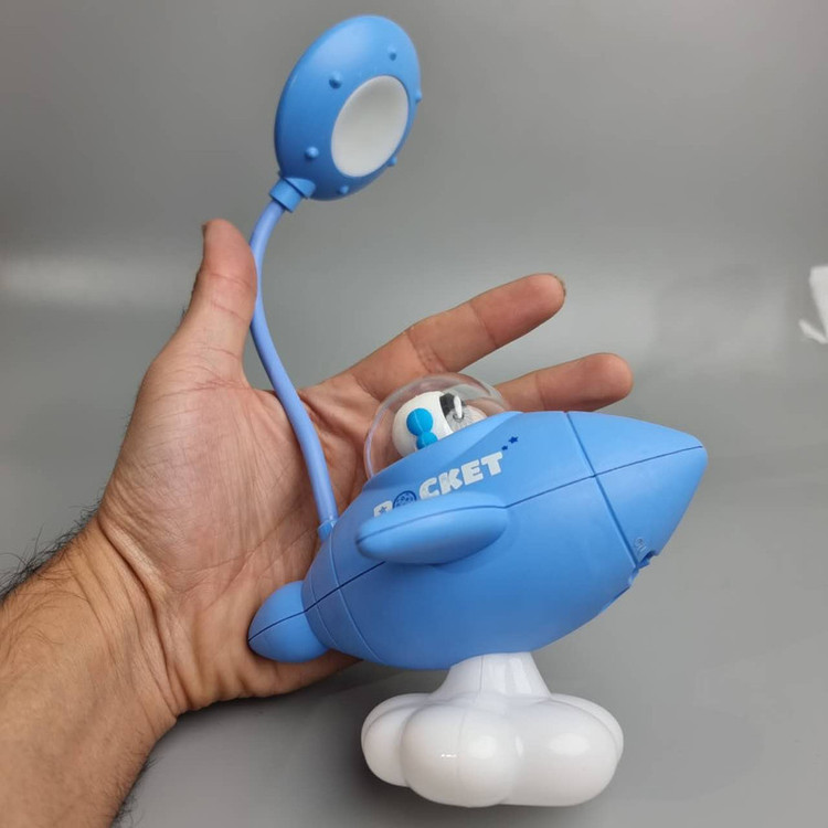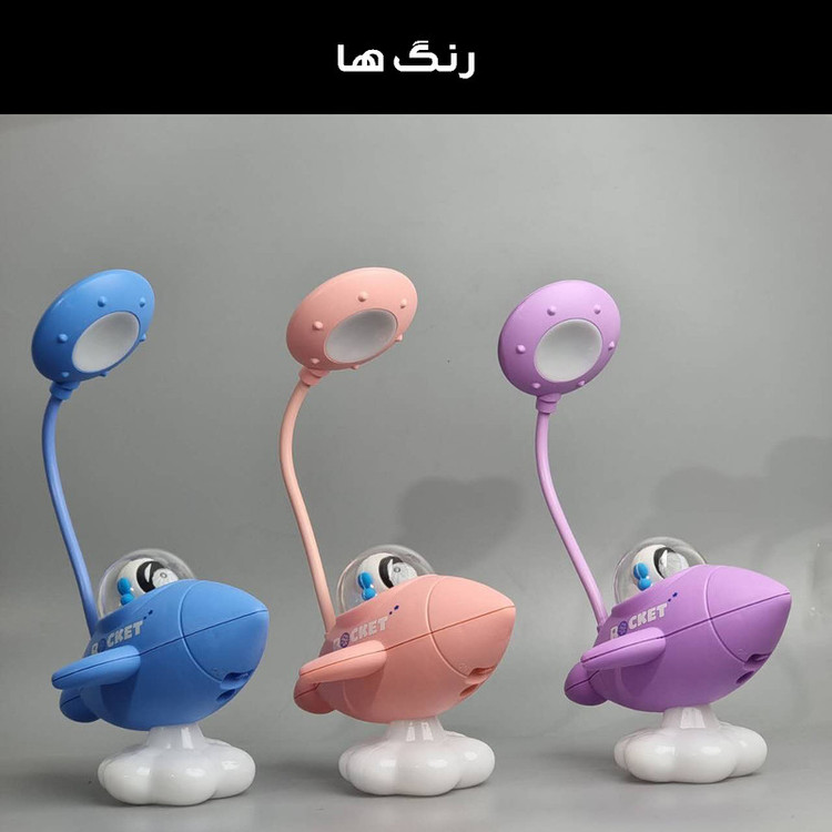 دارای باطری داخلی قابل شارژ ، دارای گردنی منعطف ، نور مهتابی ، دارای چراغ خواب با نور ها RGB