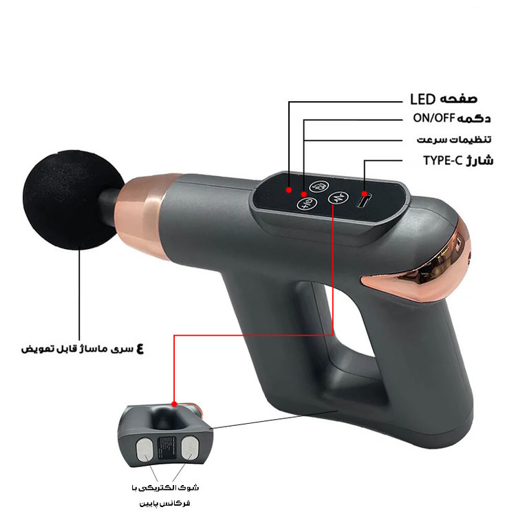سایر توضیحات: ابتدا دستگاه را شارژ کنید سپس 3 ثانیه دکمه پاور دستگاه را لمس کنید و سپس از ماساژ لذت برید . دارای دکمه های لمسی و صفحه نمایش دیجیتال شارژ شدن توسط کابل USB ولتاژ: 5V دارای 4 عدد سری قابل تعویض سرعت:3200RPM