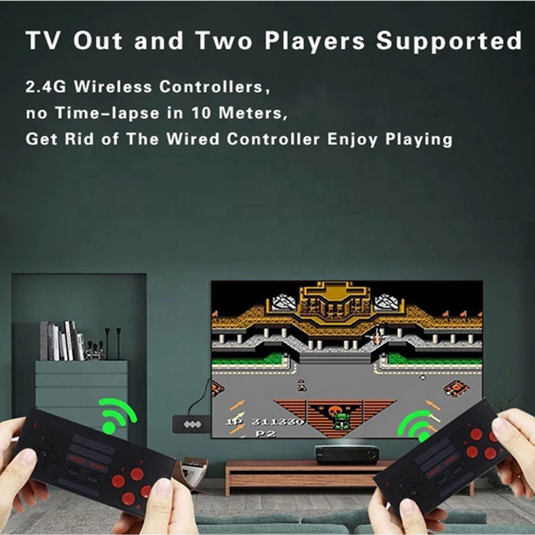 مینی کنسول مدل mini game box قابل حمل شامل 620 بازی کلاسیک از کنسولهای میکرو، نینتندو، سگا و... است که با کیفیت 4K در صفحه نمایش تلویزیون اجرا میشود. این دستگاه شامل دو دسته بازی بیسیم است و دستههای بازی با دو باتری نیم قلمی کار میکنند. بازیهای درون دستگاه در دسته بندیهای: اکشن، ماجراجویی، مسابقهای، پازل و ... طبقه بندی شده اند و در هر دسته بازیهای فراوانی قرار داده شده است.