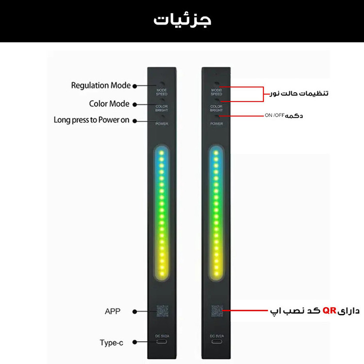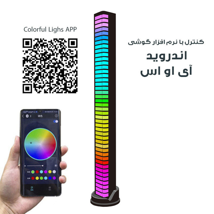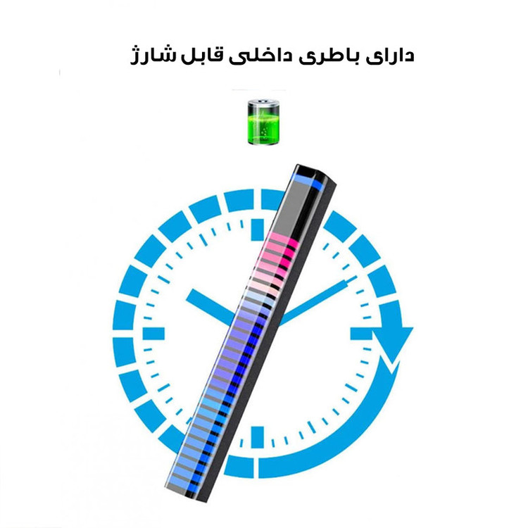 قابلیت همگام با ریتم صدای محیط ، باطری داخلی قابل شارژ ، تنظیم رنگ نور و حالت نور