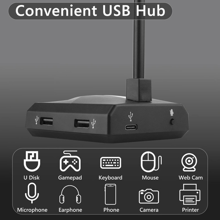 مشخصات: دارای 3 عدد درگاه USB و یک عدد در گاه Type C و همچنین درگاه جک 3.5 میلیمتری به همراه دکمه قطع میکروفون .