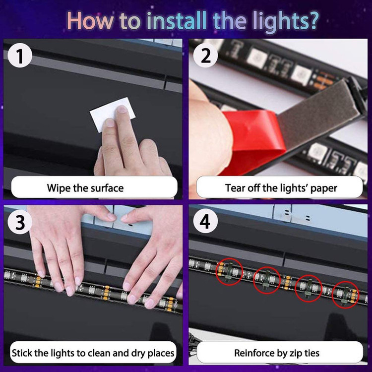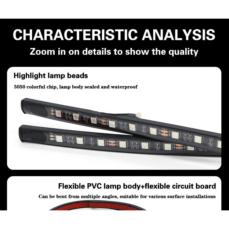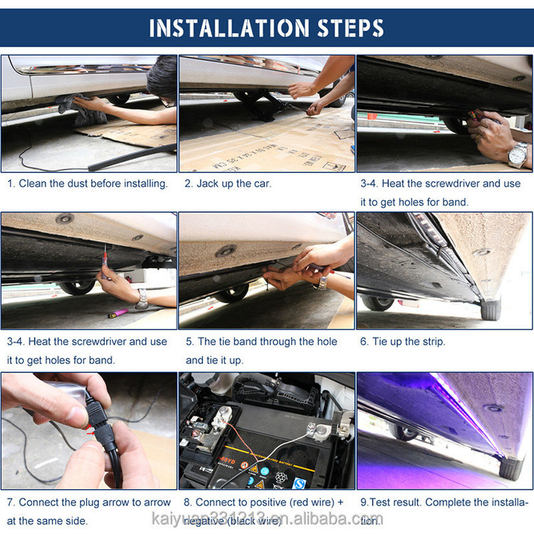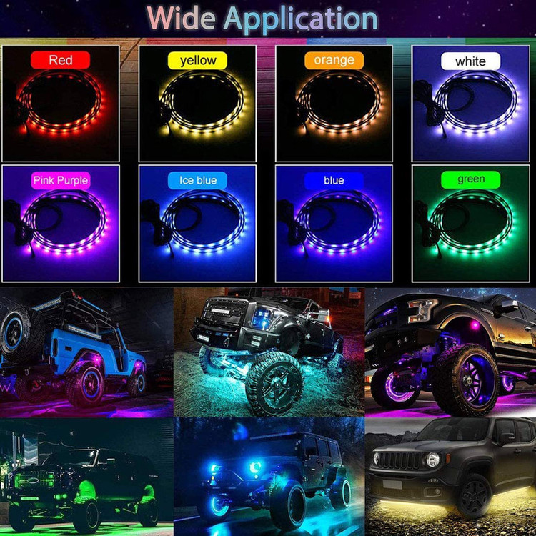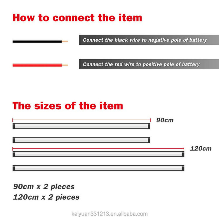 قابل نصب بر روی تمام خودرو از جمله گلگیر ها و سپر ها . 2 عدد نوار LED ضد آب 90 سانتیمتری 2 عدد نوار LED ضد آب 120سانتیمتری فیش مبدل ریموت کنترل