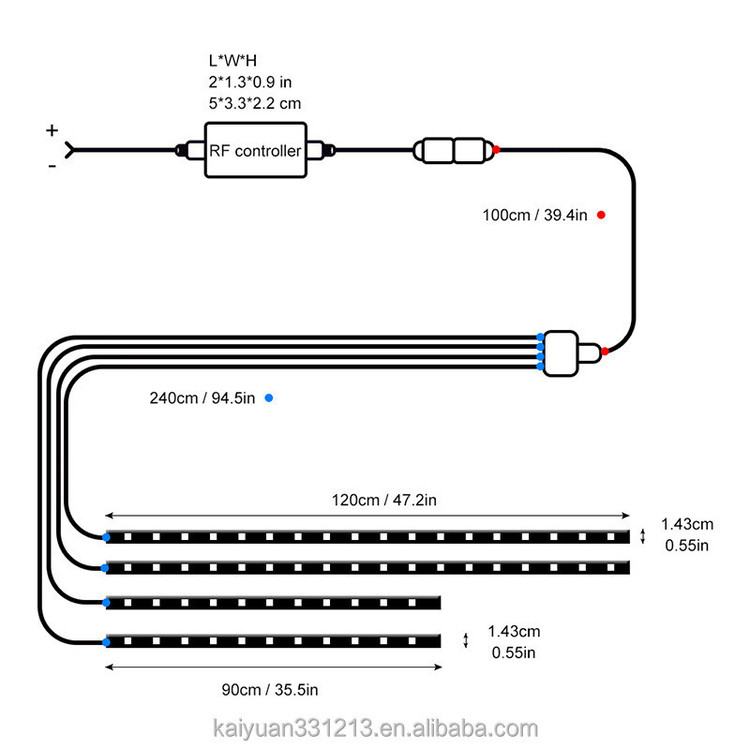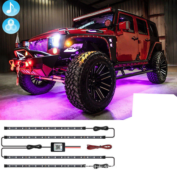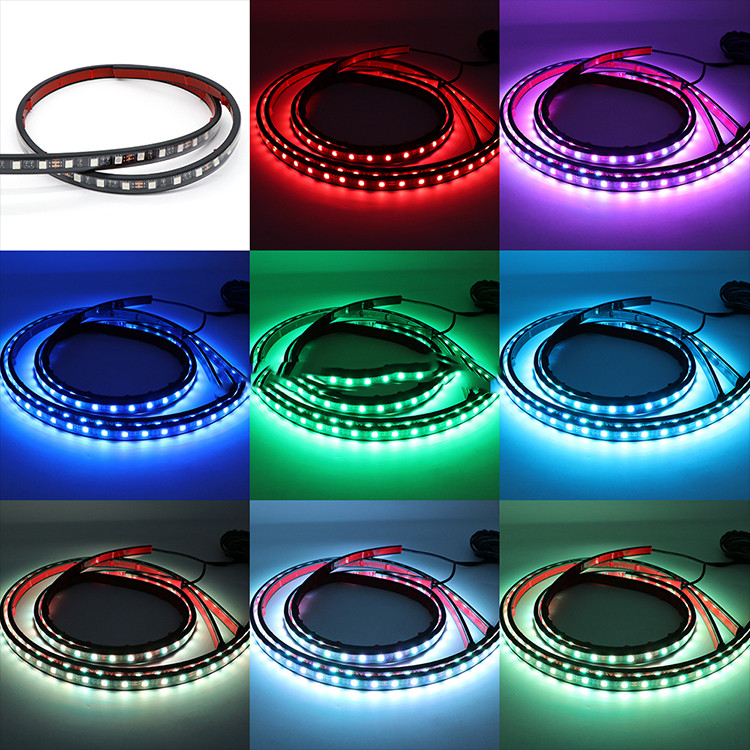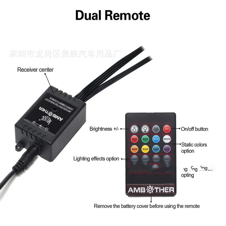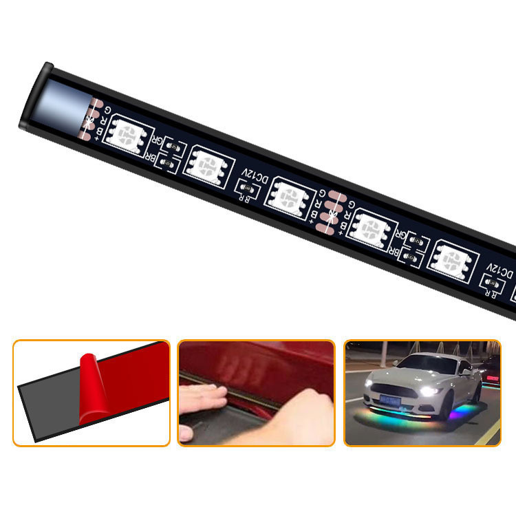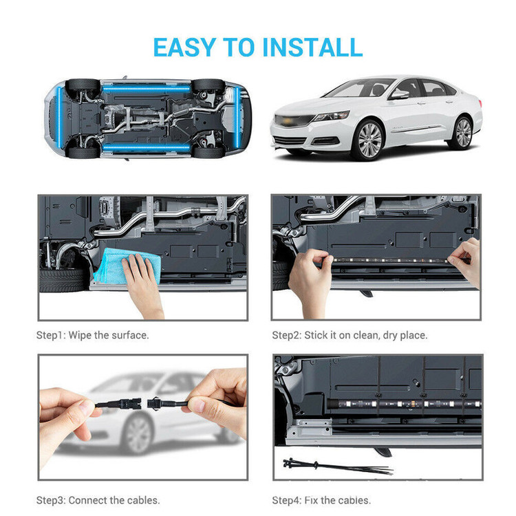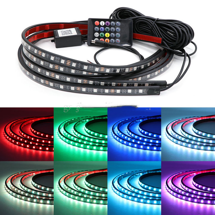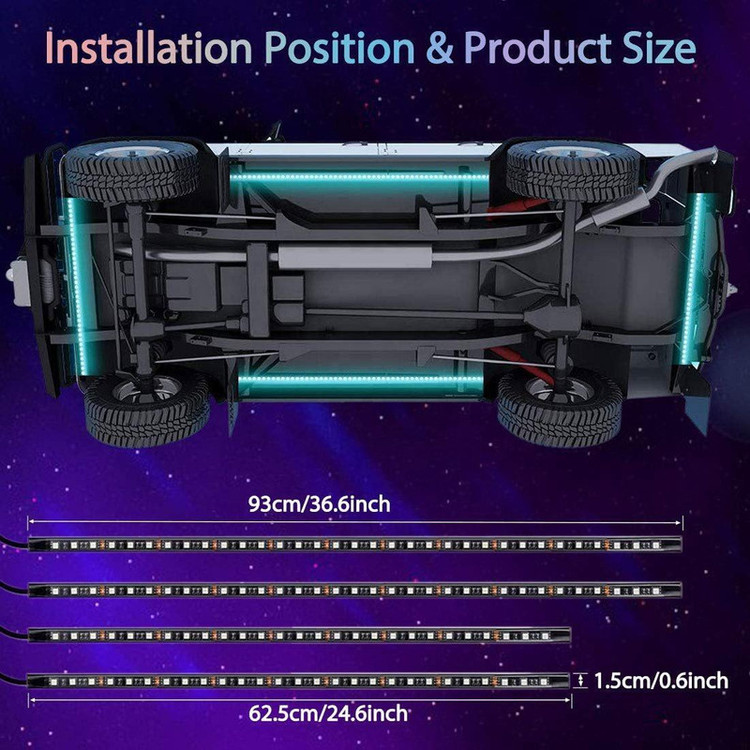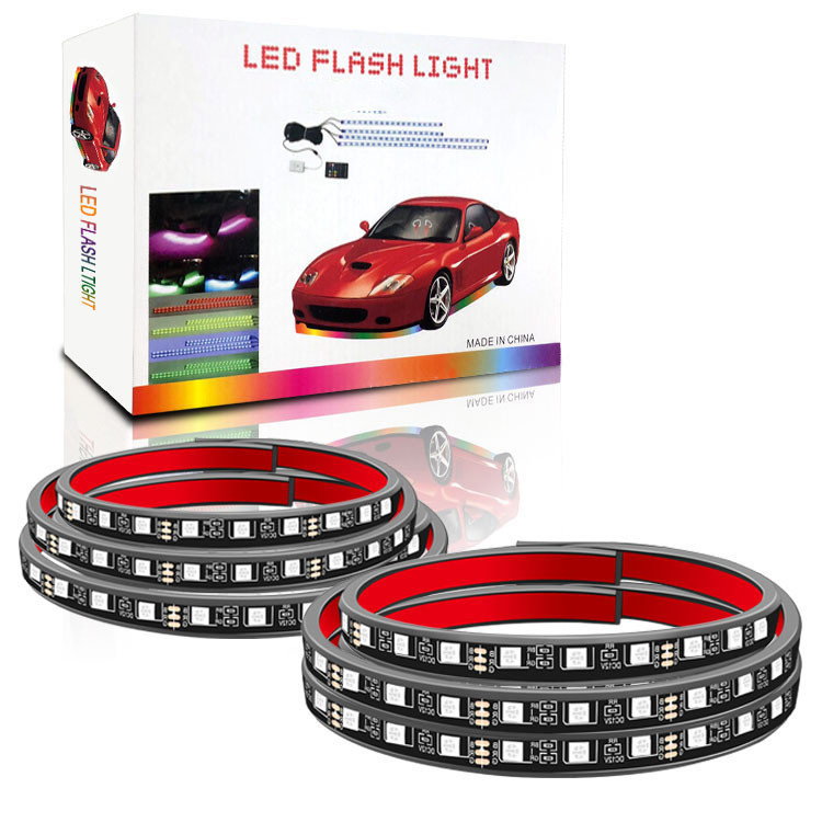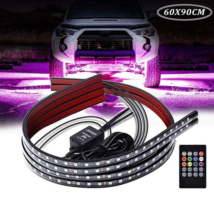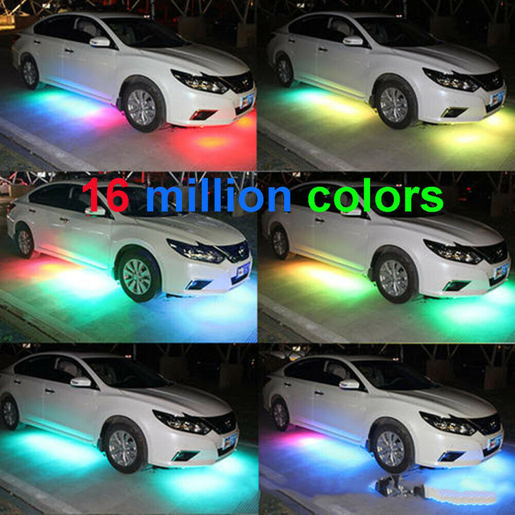کیت نورپردازی زیر خودرو کنترلی مدل neon مناسب برای تمامی خودرو ها است.داخل بسته بندی این محصول 4عدد ال ای دی به طول 90 سانت و 120 سانتی متر وجود دارد که پشت هر ال ای دی چسب دو طرفه برای نصب در مکان دلخواه قرار داده شده است و میتواند ان ها را زیر خودرو در 4 جهت نصب کرده و زیر ماشین رقص نور زیبایی ایجاد میکند.این محصول دارای کابل مبدل میباشد که دو سر آن را میتوانید مستقیم به باطرب نصب کنید و همچنین دارای ریموت کنترل برای عوض کردن رنگ یا تغییر افکت نور پردازی میباشد و در انتها این محصول ضد آب بوده و امکان کم کردن نور یا تغییر رنگ RGB با استفاده از ریموت کنترل مقدور است .