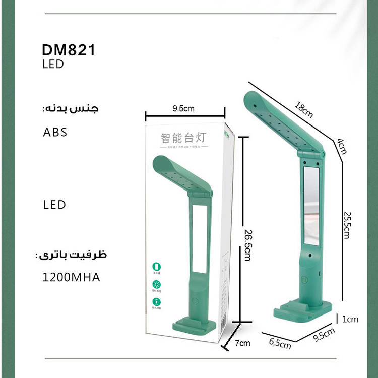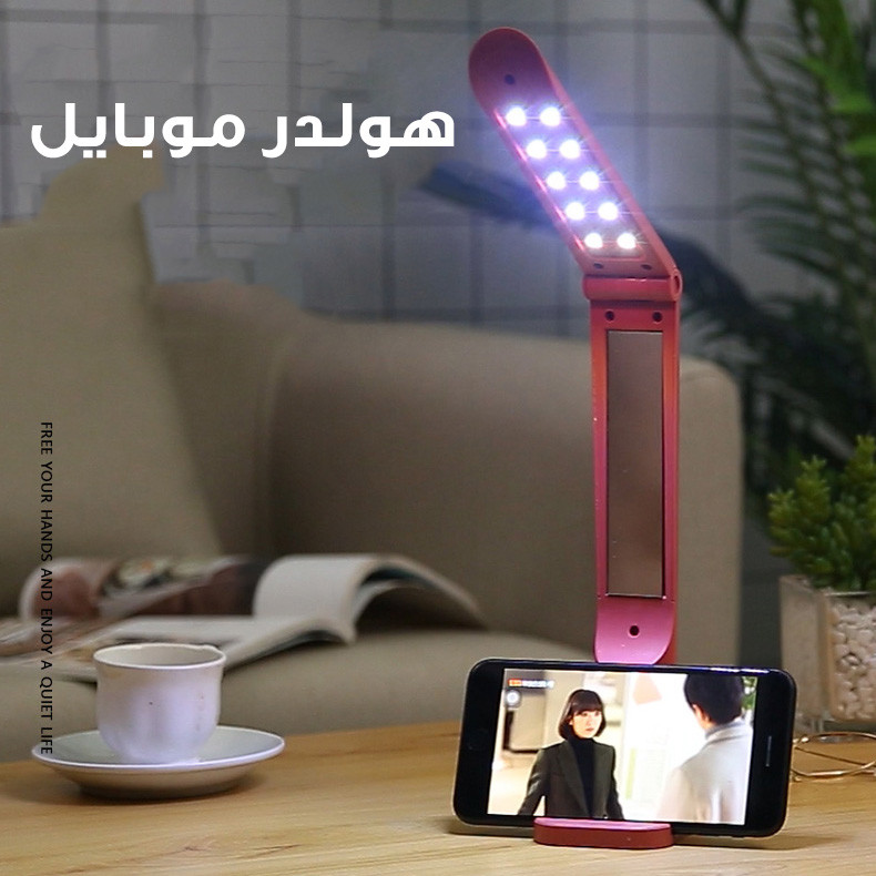 باتری داخلی قابل شارژ 18650 2مرحله تنظیم شدت نور دارای آینه دارای هولدر موبایل در محل پایه