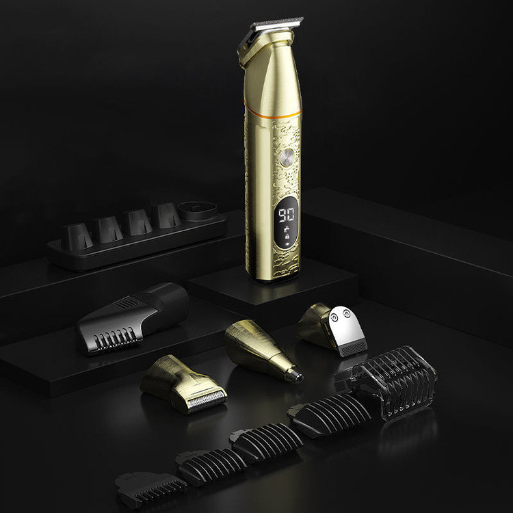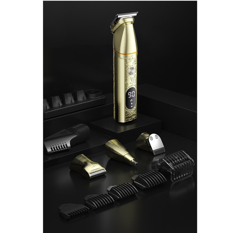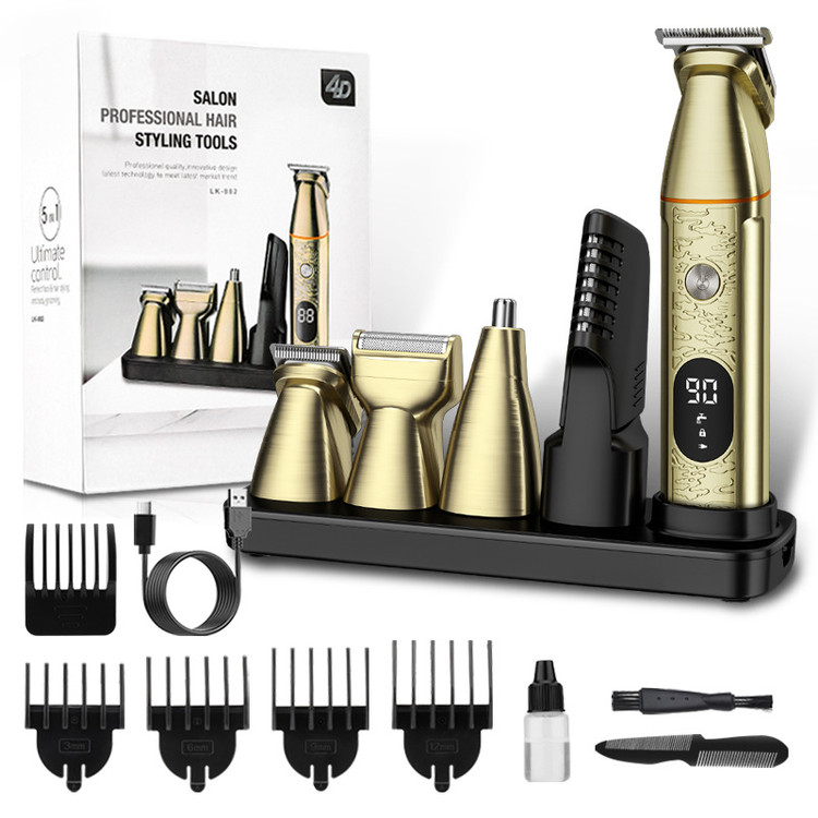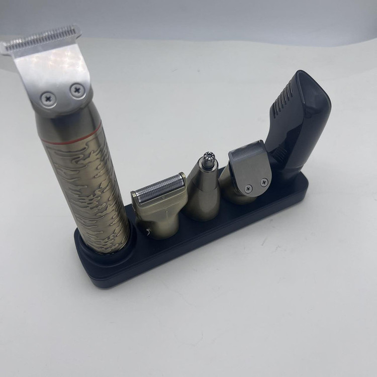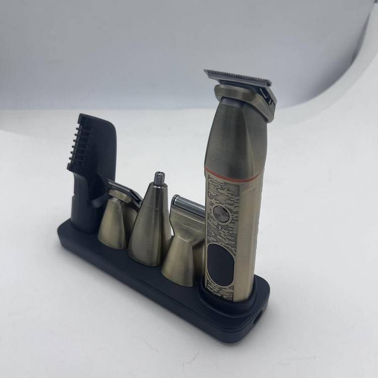 دستگاه ماشین اصلاح با بدنه فلزی 6 عدد شانه کابل شارژ 5 عدد سری مخصوص کار های مختلف برس تمیز کننده شانه سر و استند شارژ