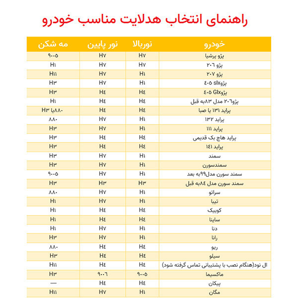 لطفا به عکس دوم توجه کنید نشان میدهد پایه هدلایت مناسب خودرو شما کدام است . همچنین در هنگام نصب به فیش مثبت و منفی هدلایت دقت کنید تا مانع اسیب زدن به خودرو و هدلایت شوید . با تشکر از شما
