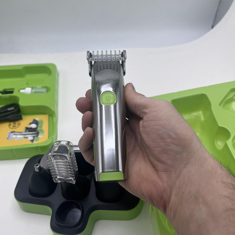 دستگاه 12در 1 سری صفر زن سری خط زن سری اصلاح سر سری دیتیلر سری مو زن گوش و بینی سری اصلاح ابرو سری اصلاح موی زاعد شانه سایز بندی کابل شارژ روغن استند