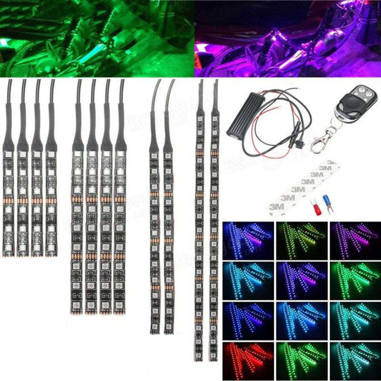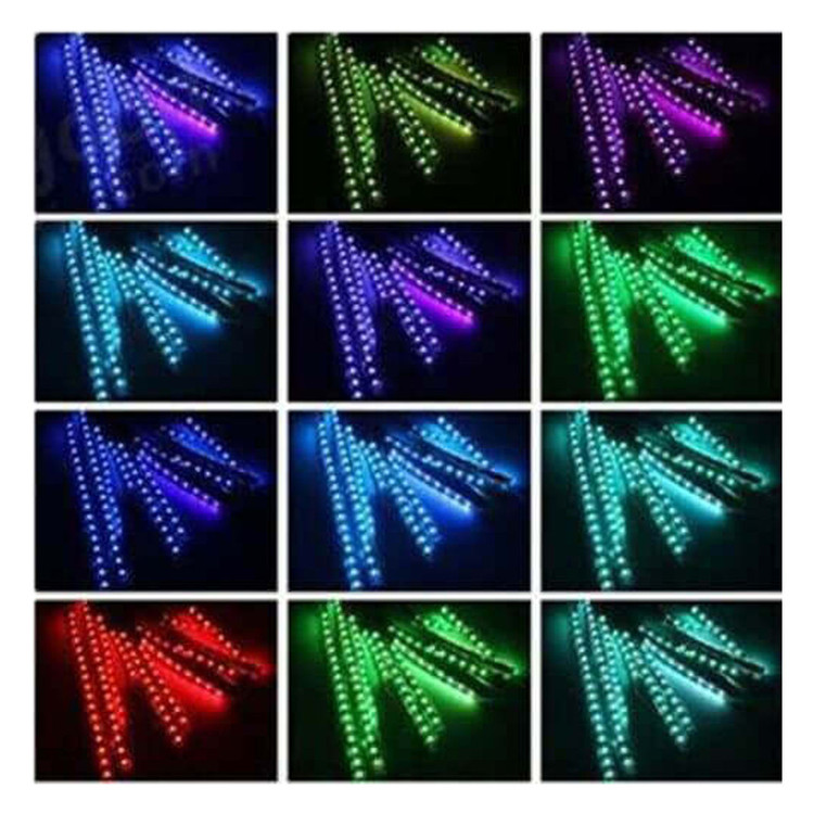 اقلام همراه این محصول 12 عدد رشته لامپ RGB . ریموت کنترل یک بسته بست اتصال