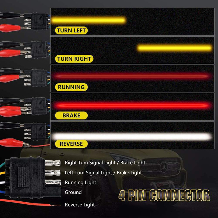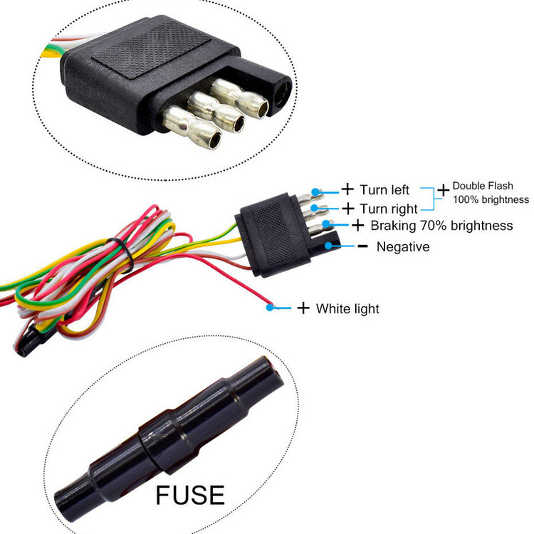 در عکس دوم نحوه نصب کالا را مشاهده میکنید . پین اول قطب منفی باطری سیم قرمز تمام LED ها سفید میشوند پین 2 نور شب ( نور قرمز ضعیف) پین 3 راهنمای سمت چپ پین 4 راهنمای راست 3 و 4 همزمان چراغ ترمز