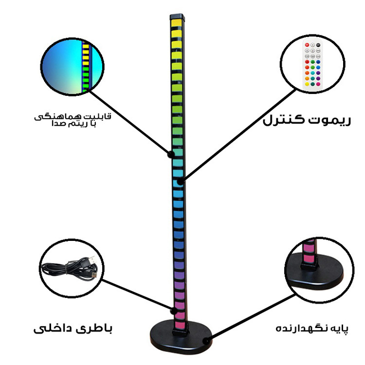 سایر مشخصات: رقص نور هوشمند دارای ریموت کنترل ، حساس به صدتی محیط حالت های نمایشی مختلف سرعت مختلف حالت رنگی قابل تنظیم الگوریتم هوشمند کاهش نویز حالت منحصر بفرد گیمینگ باتری داخلی ، ابعاد بزرگ و حمل اسان