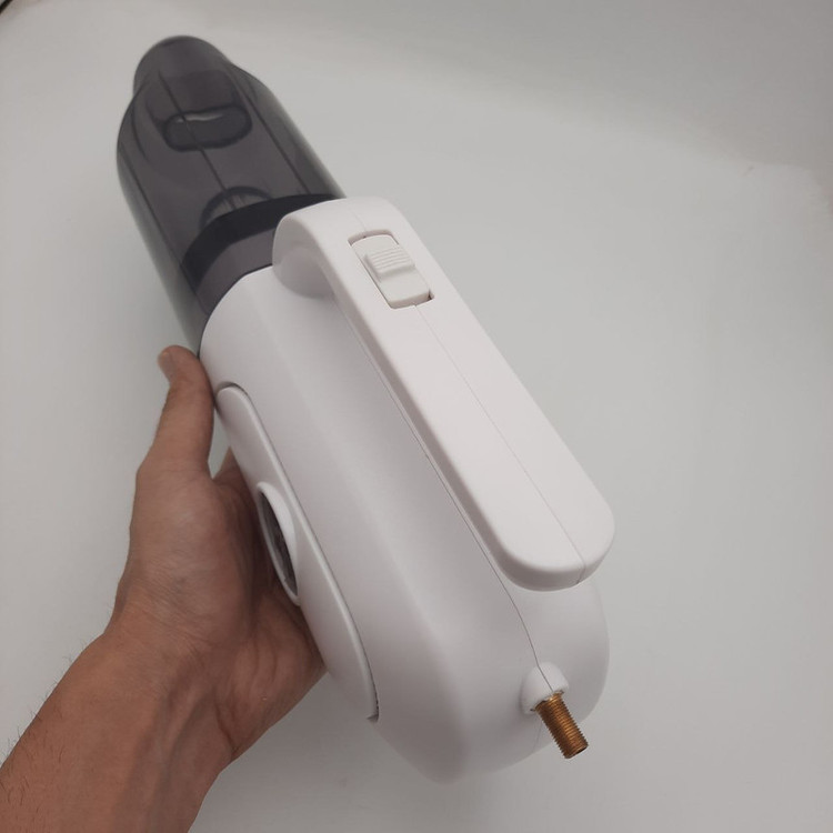 دستگاه را به برق فندکی خودرو خود متصل کنید سپس خودرو را روشن کنید بعد از جارو و کمپرسور دستگاه میتوانید با حداکثر توان استفاده کنید . دقت داشته باشید برای استفاده از حداکثر توان دستگاه باید اتومبیل روشن باشد