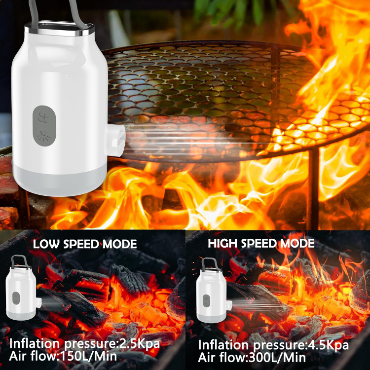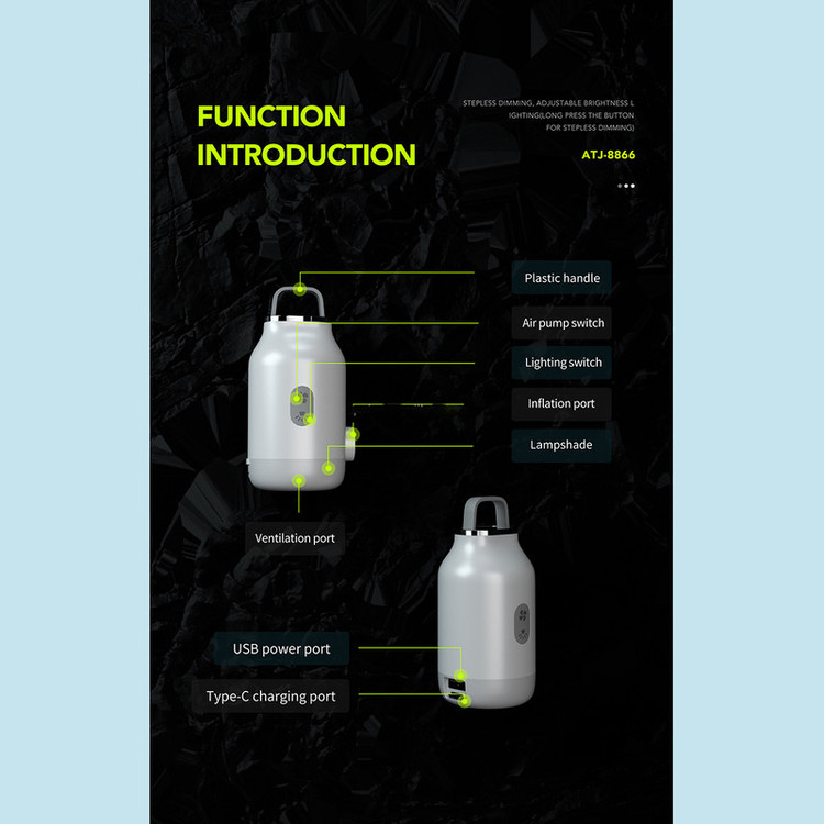 این دستگاه ترکیب 3 کارایی مهم دمنده مکنده برای باد زدن اتش و باد کردن تشک بادی و نور برای روشنایی و پاوربانک برای استفاده در طبیعت میباشد . دقت داشته باشید این دستگاه بسیار کوچک است و در کیف یا جیب شما جا میشود . ابعاد دستگاه 5 در 5 در 10 سانتیمتر است .