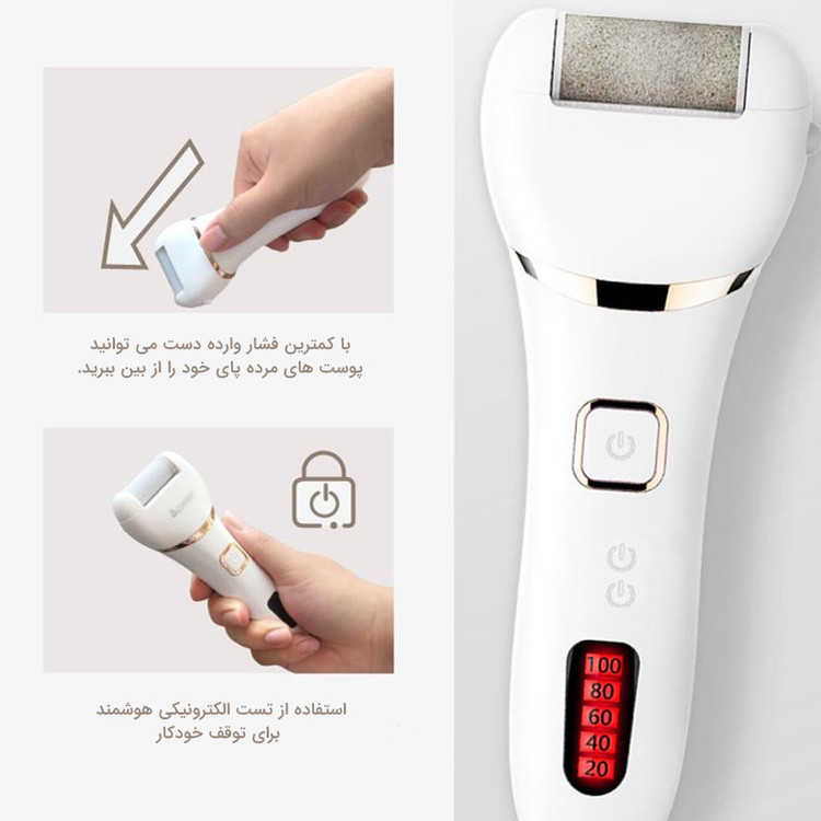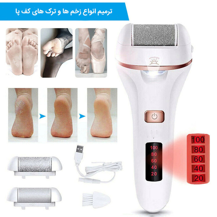 در این مجموعه 1 سر غلتکی ساده، 1 سر غلتکی معمولی و 1 سر غلتکی می توانید با آن ها تمام نیازهای پینه برداری خود را برآورده کنید. سر غلتکی درشت قابل شارژ مجدد که 360 درجه می چرخد تا نتایج سریع روی پوست ضخیم و پینه دار داشته باشد. با کیت پاک کننده پینه الکتریکی IWEEL، پاهای خود را با پدیکور اسپا مانند در آسایش خانه خود نوازش کنید. دو نوع سرعت در یک دکمه: سرعت 1700x/min متناسب با دور کند و 2000x/min متناسب با دور تند است. سرعت کم برای پینه دست و مراقبت از پوست ظریف تر مناسب است. سرعت بالا برای پینه های ضخیم سرسخت و پوست های مرده مناسب است. شما آزاد هستید که سرعت مورد نیاز خود را انتخاب کنید. 5 سطح نمایش باتری می توانید ببینید چقدر باتری باقی مانده و چه زمانی باید دستگاه شارژ شود. ظرفیت باتری 1200mah می باشد که می تواند برای 120 دقیقه زمانی که دستگاه به طور کامل شارژ شده است استفاده شود. طراحی ضد آب دستگاه دارای گواهینامه IPX7 مقاوم در برابر آب می باشد. قابل شستشو در زیر آب جاری به طور کامل می باشد. فقط توجه کنید که نباید در آب غوطه ور شود. توجه داشته باشید این محصول برای پوست خشک و زبر دست، پا یا پاشنه طراحی شده است و نباید در سایر نقاط بدن استفاده شود. برای جلوگیری از هر گونه تصادف یا آسیب به بدن یا محصول خود، لطفاً دستگاه از هرگونه نخ، لباس، مو و غیره دور نگه دارید با آداپتور بیش از 7 ولت شارژ نمی شود به طور معمول، ولتاژ خروجی آداپتور تلفن همراه یا رابط USB رایانه از 7 ولت بیشتر نمی شود که بهتر است با آن دستگاه را شارژ کنید، اما آداپتور آی پد یا رایانه از 7 ولت بیشتر می شود و برای شارژ مناسب نیست.