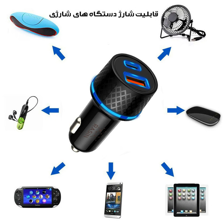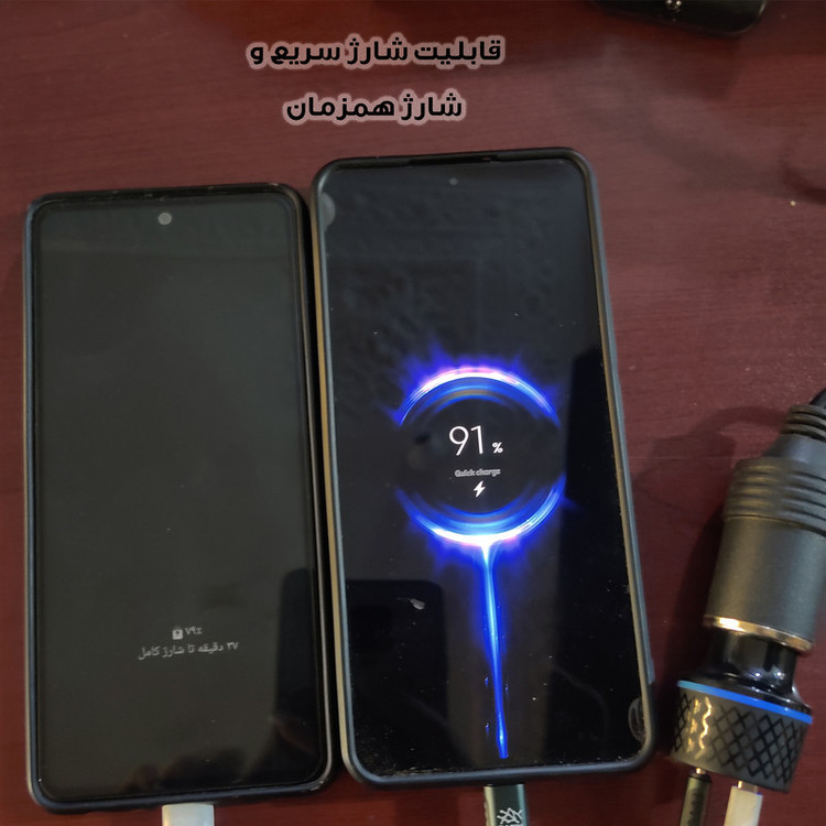 شدت جریان خروجی: 1.67 آمپر مخصوص موبایل , 2.2 آمپر مخصوص تبلت و موبایل