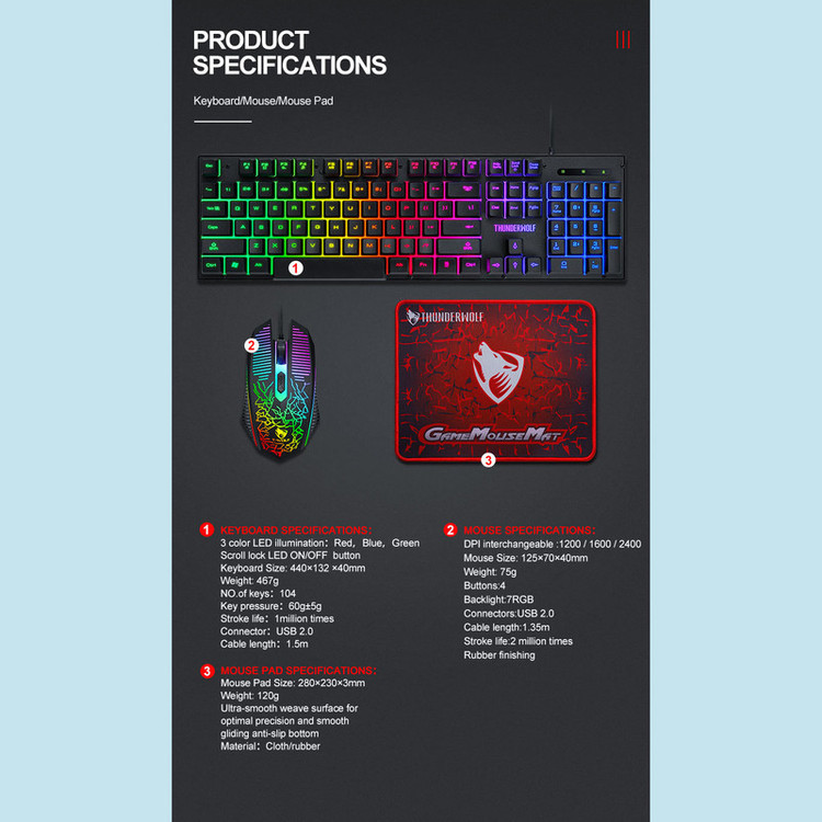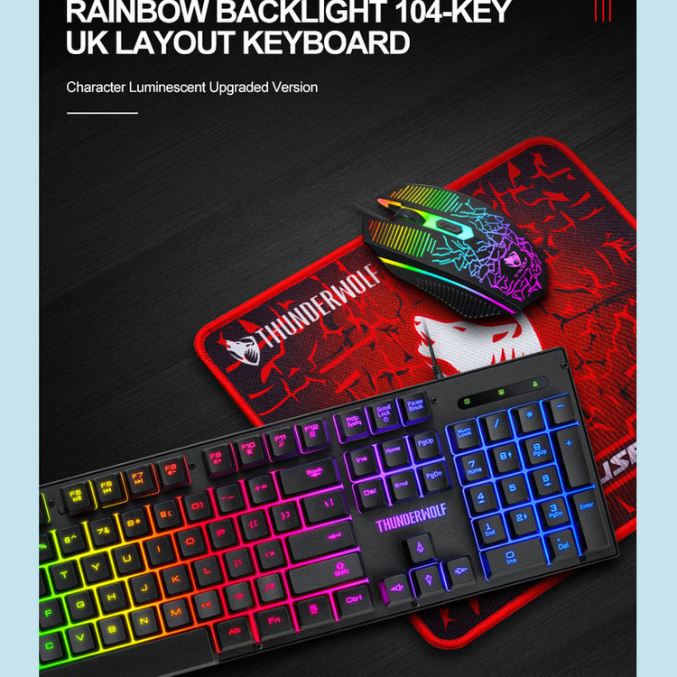 ست گیمینگ تیولف مدل 3in1 TF31، سوییچ ممبران، Full-Size، نورپردازی LED RGB