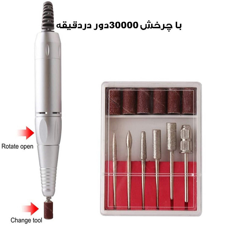 اقلام همراه: دارای صفحه نمایش دیجیتال ،مناسب برای خشک کردن انواع پودر ، انواع ژل ها و لاک ژل ها - فن زیر دست - سوهان برقی-6 عدد سری و 6 عدد پولیش
