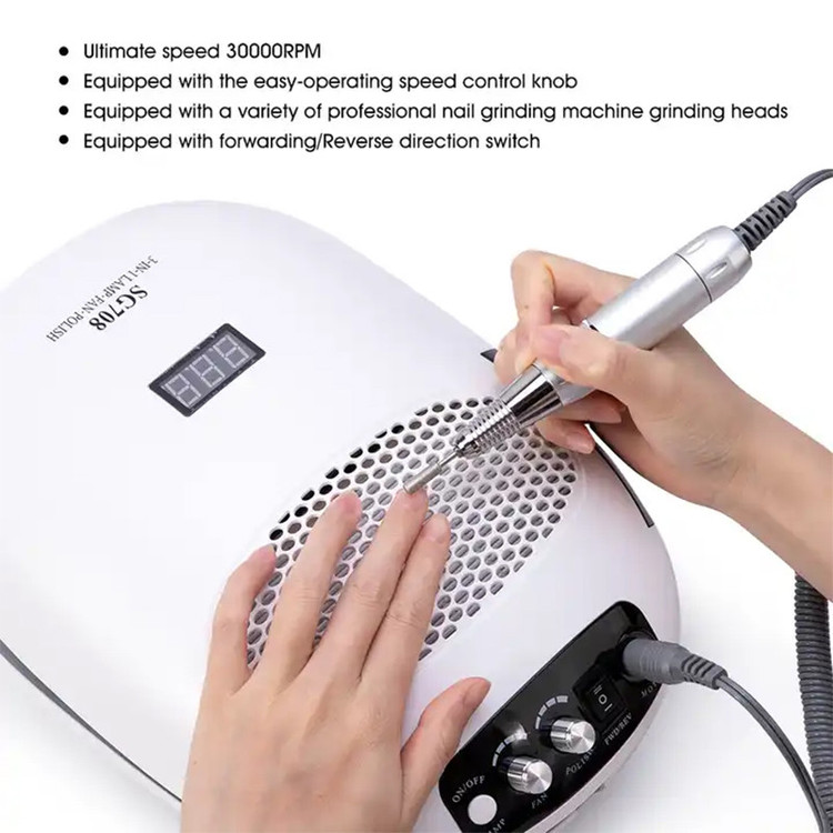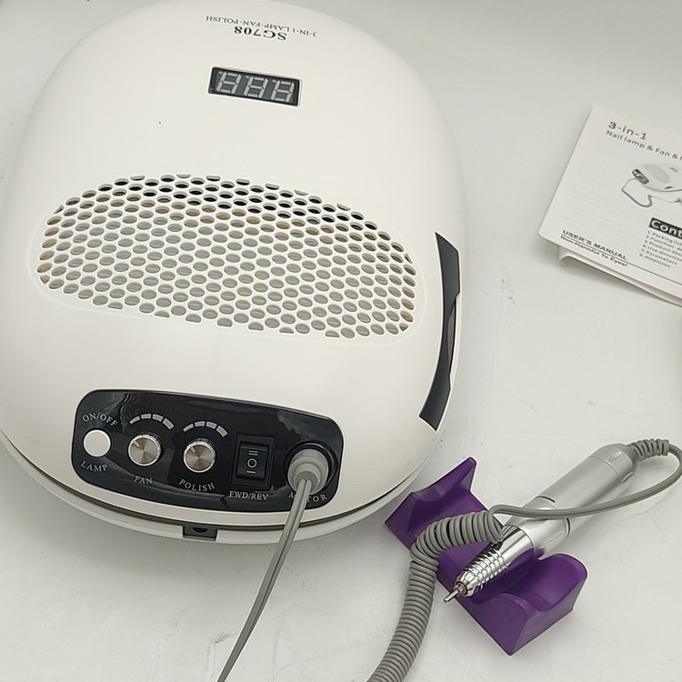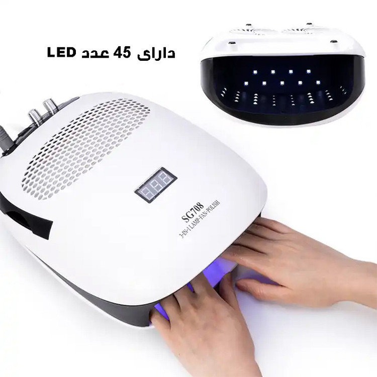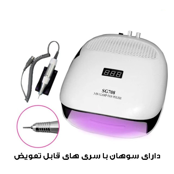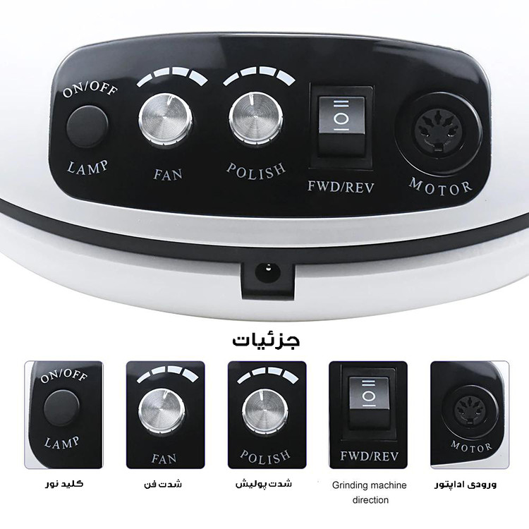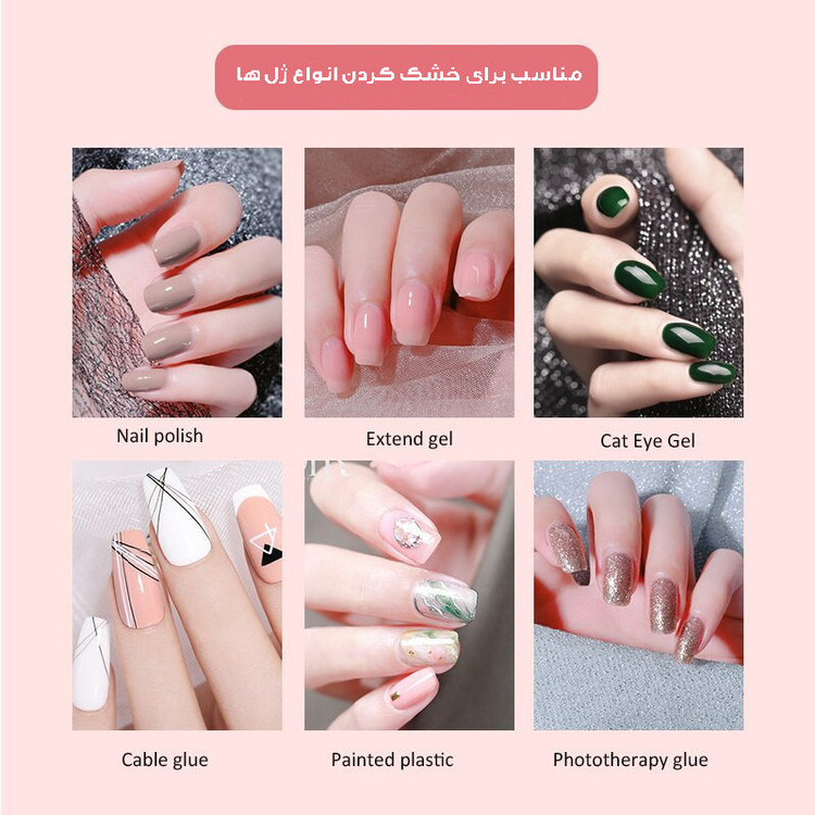 دارای صفحه نمایش دیجیتال ،مناسب برای خشک کردن انواع پودر ، انواع ژل ها و لاک ژل ها - فن زیر دست - سوهان برقی-6 عدد سری و 6 عدد پولیش