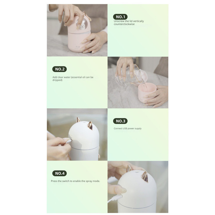 سایر توضیحات: مخاوط آب و خوشبو کننده را در مخزن بریزید دستگاه را توسط کابل به برق یو اس بی بزنید و دکمه دستگاه را بزنید .