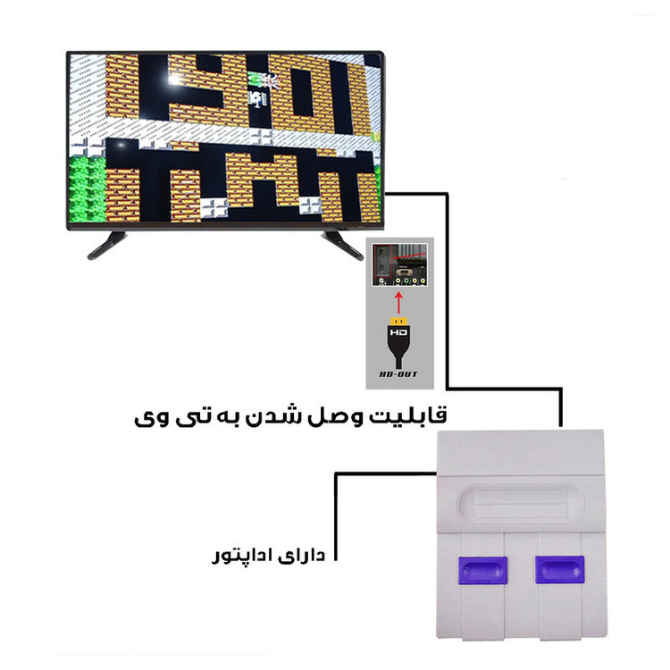 دستگاه کنسول بازی 2 عدد دسته بازی کابل HTMI آداپتور برق رم میکرو