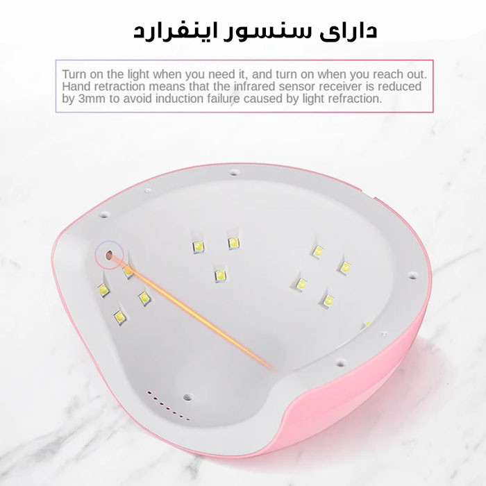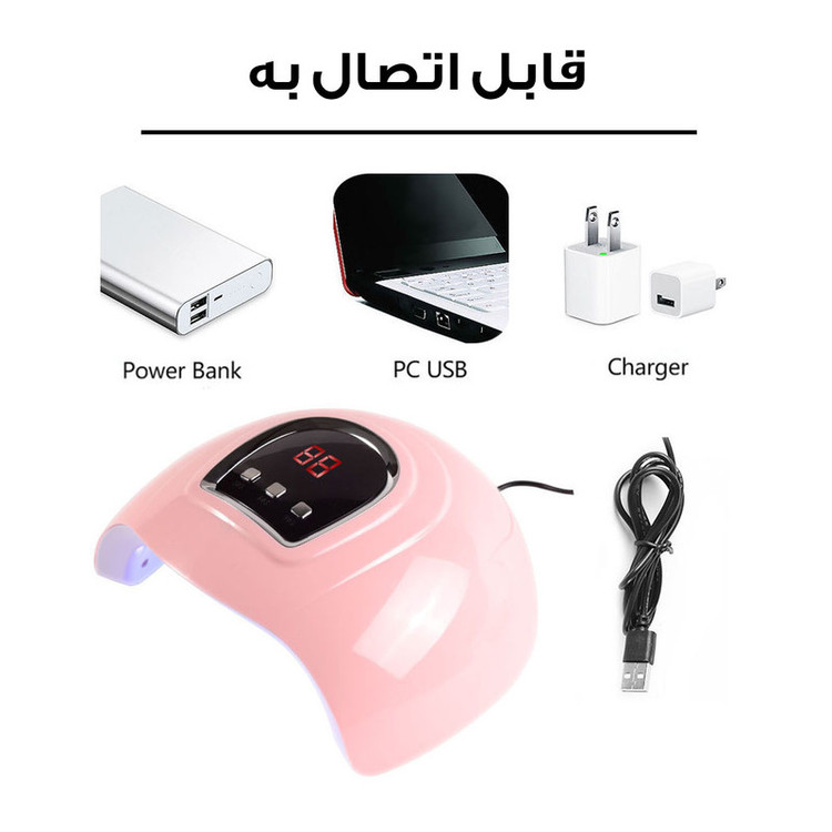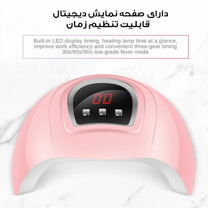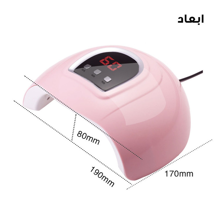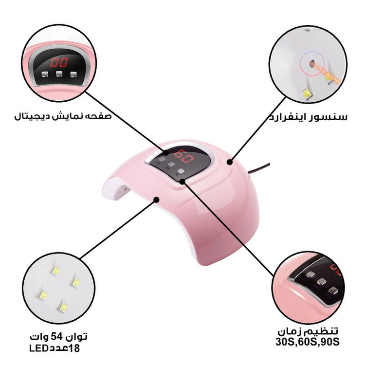 18 عدد ال ای دی توان 54 وات مناسب برای سالن زیبایی مناسب برای انواع لاک ژل ها و لاک ژل ها ، دارای تنظیم زمان و فحه نمایش دیجیتال