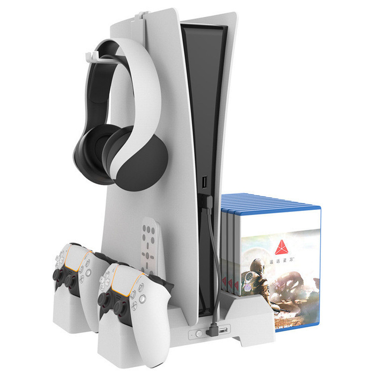 امکانات و قابلیتها: هولدر نگه دارنده هدفون . هولدر نگه دارنده ریموت کنترل. شارژر مغناتیسی ۲ عدد کنترلر PS۵ فن خنک کننده دستگاه . محفظه نگهدارنده ۱۲ عدد دیسک .