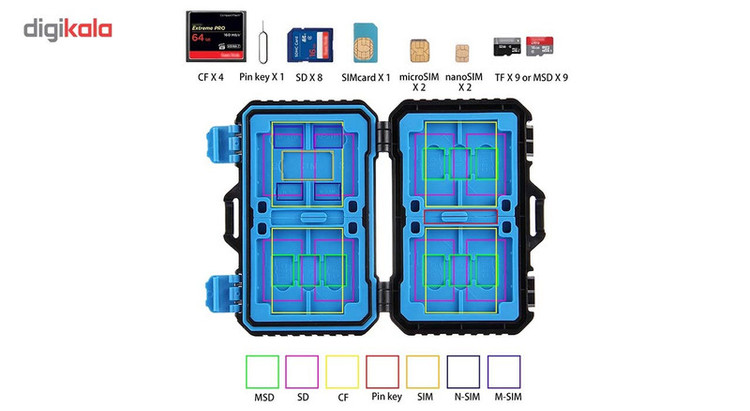 ویژگی های فنی: محفظه برای 27 عدد کارت حافظه و سیم کارت