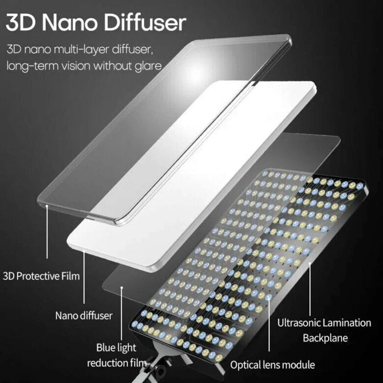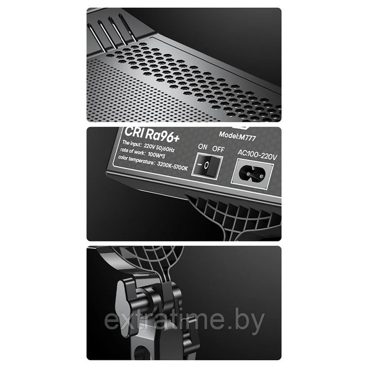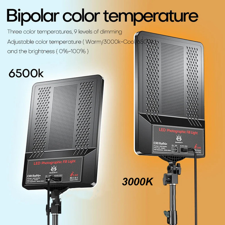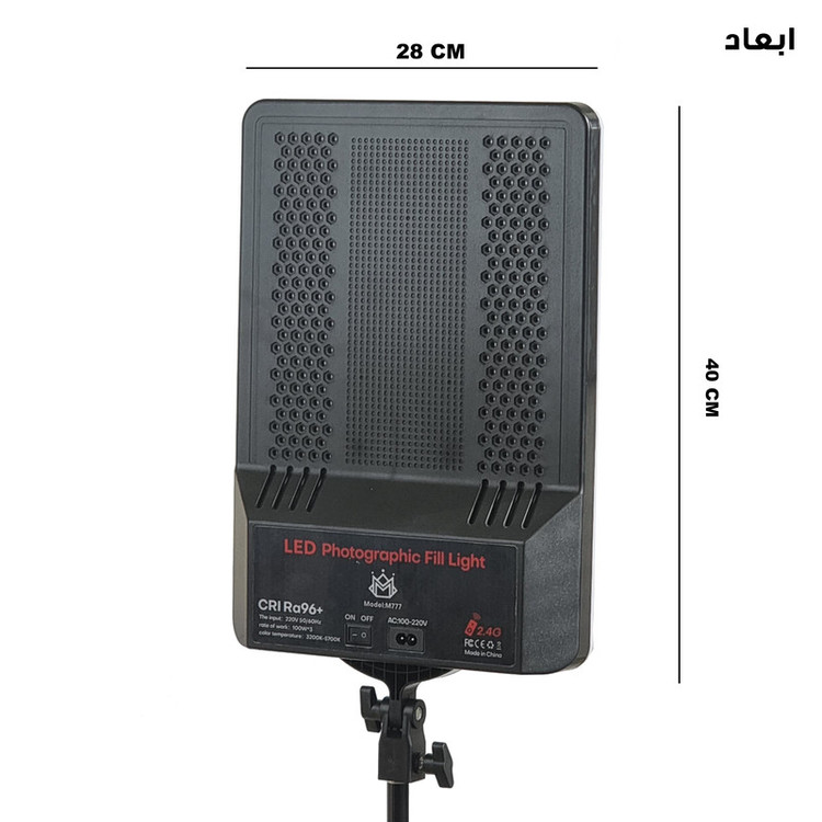 ویژگی ها: دمای رنگ قابل تنظیم از 3200 کلوین تا 5700 کلوین توان خروجی: 42وات ولتاژ ورودی 220 ولت کنترل از راه دور جنس بدنه پلاستیک دارای پایه فلزی با حداکثر بازشوندگی 210 سانتی متر