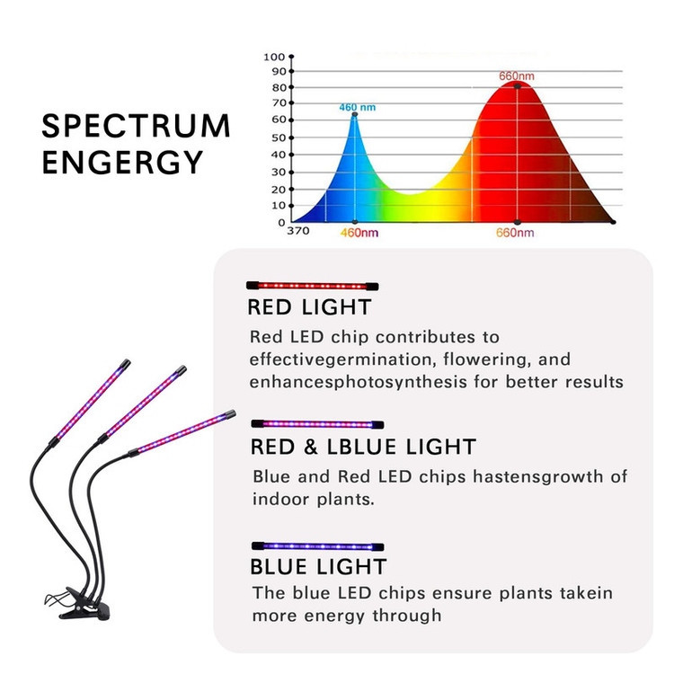 از چراغ رشد گیاه و طیف نوری آن، هم می توان جهت رشد و پرورش گیاهان آپارتمانی و هم جهت ضد عفونی کردن و میکروب زدایی محیط های آلوده استفاده نمود. نصب و استفاده از این دستگاه بسیار ساده بوده و به پورت یو اس بی متصل می شود. از اینرو می توان آن را به سادگی در سرویس های بهداشتی، نزدیک گیاهان و هر محیط دیگری مورد استفاده قرار داد. چراغ های رشد گیاه یا Grow Light نور خورشید را برای گیاهان شبیه سازی می کنند و با تولید طیف الکترومغناطیسی مناسب رشد گیاه، نقش بسزایی در فتوسنتز گیاه دارند. قسمت زیادی از نور مورد نیاز برای گیاهان در طیف 400 الی 700 نانومتر قرار دارد که به آن تابش فعال فتوسنتزی یا PAR می گویند . در این طیف نوری، نورهای آبی و قرمز بیشترین تاثیر را روی گیاه دارند اما به این معنی نیست که گیاهان دیگر فرکانسها را برای سلامت خود نیاز نداشته باشد. موارد حائز اهمیت در استفاده از پروژکتور های رشد گیاه: . پروژکتور را در فاصله مناسب با گیاه و به صورت عمودی قرار دهید. فاصله 60 تا 70 سانتیمتر از تاج گل برای این پروژکتور کافی است. فاصله کمتر باعث سوختن گیاه می شود. ساده ترین راه تست فاصله مناسب گیاه و پروژکتور این است که دست خود را نزدیک برگ گلدان نگه دارید، اگر دستتان گرمای نور را حس کرد، کمی فاصله پروژکتور را از گیاه بیشتر کنید.. مانند زندگی طبیعی، گیاهان نیاز به ساعات تاریکی در طول شبانه روز دارند. نور با یک دوره منظم روز و شب ( در حدود 10 الی 12 ساعت روشن و 12 الی 14 ساعت خاموش ) به گیاه تابیده شود و مکرر خاموش و روشن نشود.• ساعت روشنایی لامپ برای گیاهان آفتاب دوست (نیاز نور شدید) 12 ساعت در طول شبانه روز است. • ساعت روشنایی برای گیاهان سایه پسند (نیاز نوری کم) 10 ساعت در طول شبانه روز است. • لامپ دارای لنز می باشد که این امر موجب قدرت بیشتر پرتاب نور و تمرکز نور روی سطح گیاه می شود. این لامپ در دو طیف تخصصی گیاه و طبیعی گیاه بفروش می رسد: • رنگ نور لامپ رشد گیاه، با طیف تخصصی، صورتی متمایل به بنفش است. زیرا طول موج خالی از طیف های غیر ضروری برای رشد گیاه را دارد. • رنگ نور لامپ رشد گیاه با طیف طبیعی، نزدیک به رنگ لامپ آفتابی معمولی است. زیرا از ترکیب کامل نانومتر ها به همراه طیف مخصوص رشد گیاه در ساخت آن استفاده شده است.