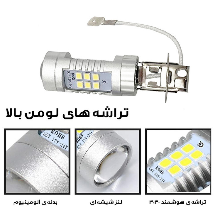 لامپ هدلایت خودرو مدل 6-lens پایه H3 بسته دو عددی