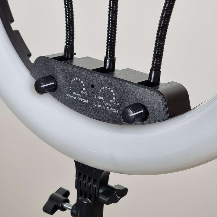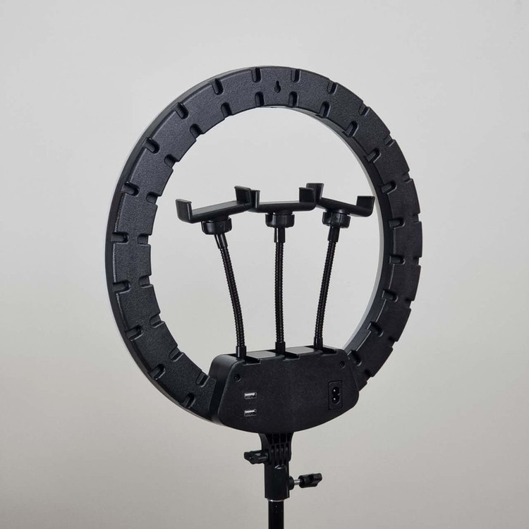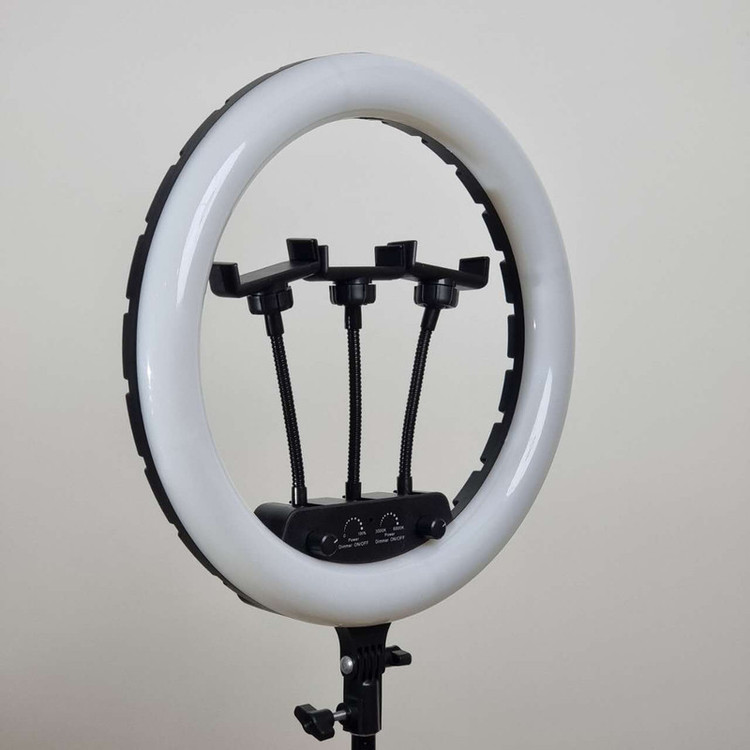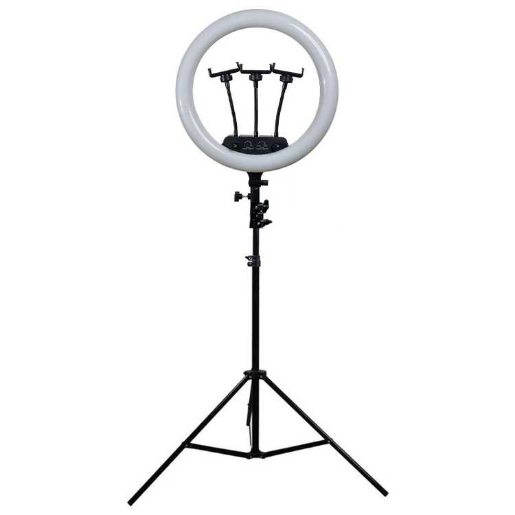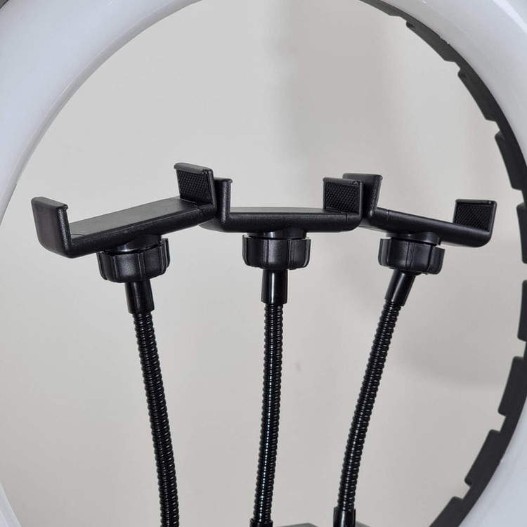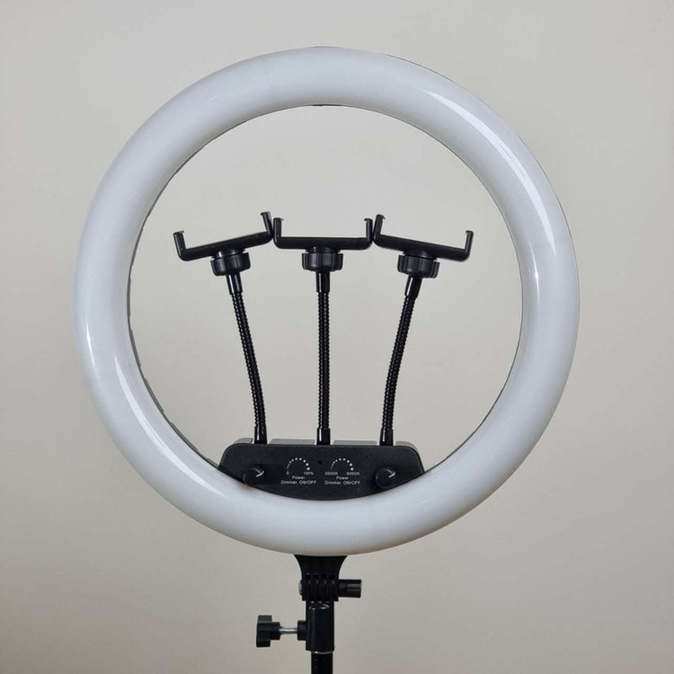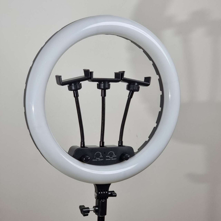 ویژگی ها: 3عدد هولدر نگهدارنده موبایل - 3پایه 210 سانتی متری به همراه کیف حمل 3پایه_ قطر خارجی رینگ لایت 36 سانتی متر - دمای رنگ قابل تنظیم بصورت آفتابی ، مهتابی و ترکیبی - دارای کنترل از راه دور برای کنترل رینگ لایت- - راه اندازی با برق مستقیم شهری