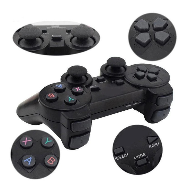 هر اندازه هم که شما با کنسول های بازی مشکل داشته باشید. باید بپذیرید که بازی های رزمی، فوتبال، ریسینگ و با کیبورد و موس برای شما چیزی جز کابوس نیست. فرض کنید بخواهید بازی مثل تیکن را با کیبورد انجام دهید! پیاده کردن همه تکنیک ها با کیبورد واقعا زجر آور خواهد بود. (مسئله خراب شدن کیبورد بعد از مدتی استفاده هم وجود دارد). وقتی شما تصمیم به خرید گیم پد می گیرید با انبوهی از مدل های رنگارنگ ، با طراحی های به ظاهر عجیب روبه رو می شوید. که انتخاب را برای شما ممکن است دشوار سازد ... این محصول دو عدد دسته بازی بی سیم است که با یک دانگل USB به کامپیوتر یا اندروید باکس یا هر وسیله دیگری که USB ساپورت میکند متصل میشود . 2 عدد دسته بازی طرح پلی استیشن که با یک عدد دانگل USB عرضه میشود . این دسته ها 2 عدد چراغ LED دارند که نمایان گر پاور و مود دستگاه هستند . این دسته ها برای روشن شدن نیاز به 2 عدد باطری نیم قلمی دارند که همراه دستگاه عرضه نمیشوند و نیاز به تهیه آن ها دارید .