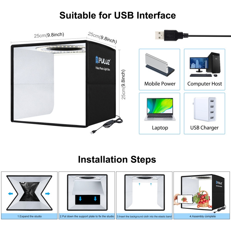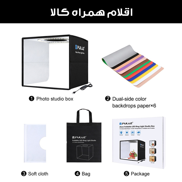 لایت باکس ابعاد 25*25 دمای رنگ: 3200-6000K. قدرت: 9.3W