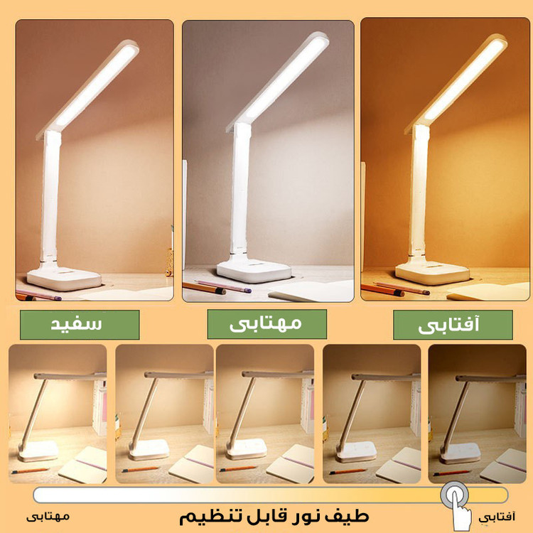 باتری داخلی قابل شارژ ، تنظیم رنگ نور ، تنظیم شدت نور