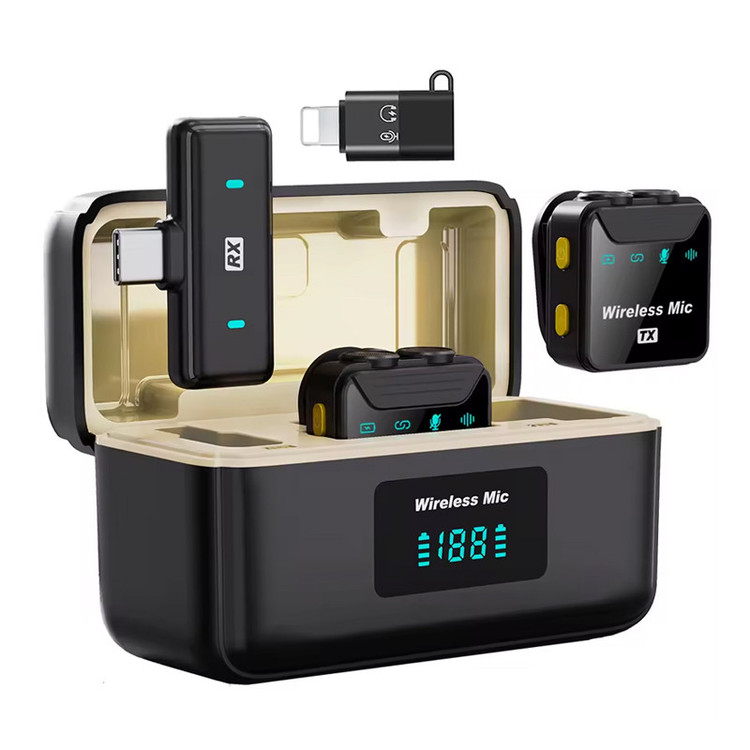 این میکروفون یقه ای امکان اتصال به دستگاه های مختلف را دارد و شما می توانید براحتی با آن پادکست ،مصاحبه ها، ضبط موسیقی ، همنوازی با ساز و آواز، ضبط ویدیوهای یوتیوب و بسیاری دیگر از سناریو های مختلف تولید محتوا را با بالاترین کیفیت انجام دهید. رو این میکروفون چند کاره دکمه ای برای ایجاد اکو در صدا وجود دارد که در موارد خوانندگی و موسیقی قطعا برای شما راهگشا خواهد بود. میکروفون بی سیم دو کاناله SX23 یک گزینهی کاربردی برای تولید محتوا با گوشی موبایل است. این محصول دارای دو فرستنده و امکان استفادهی همزمان برای دو کاربر است که هریک از آنها میتوانند تا ۱۵ متر دورتر از گیرنده قرار گیرند. به همراه این محصول کابلهای اتصال مستقیم به انواع گوشی اندرویدی و آیفون ارائه شده که مزیت بزرگی برای یک میکروفن بیسیم در این ردهی قیمت محسوب میشود. طراحی این محصول بسیار مدرن و پیروی ترند این روزها یعنی بدنهای مربعیشکل است. میکروفون بی سیم دو کاناله SX23 دارای گیرهی متصل به بدنه و باتری داخلی با ۱۲ ساعت شارژدهی هستند که از طریق درگاه Type-C روی بدنهی آنها و کابل ارائه شده به همراه محصول شارژ میشوند. از مزایای فنی این محصول میتوان به وجود خروجی هدفون برای مانیتورینگ صدا و امکان کاهش یا فزایش صدای خروجی اشاره کرد. ارتباط بین قطعات فرستنده و گیرنده در این محصول از طریق امواج 2.4GHz صورت میگیرد و تاخیر ارسال صدا ۳۰ میلیثانیه برآورده شده که بسیار ناچیز است. همچنین میکروفنها دارای سه حالت صدابرداری آکوستیک، دارای اکو و بدون نویز هست که خصوصاً حالت بدون نویز یا "نویزکنسلینگ" یکی از حالتهای پرکاربرد برای تولید محتوا در محیطهای شلوغ است