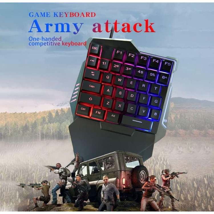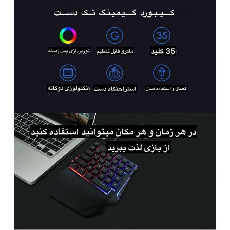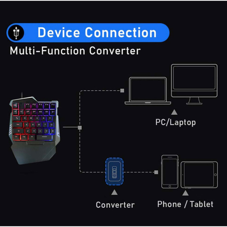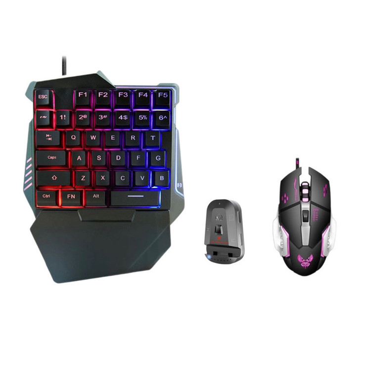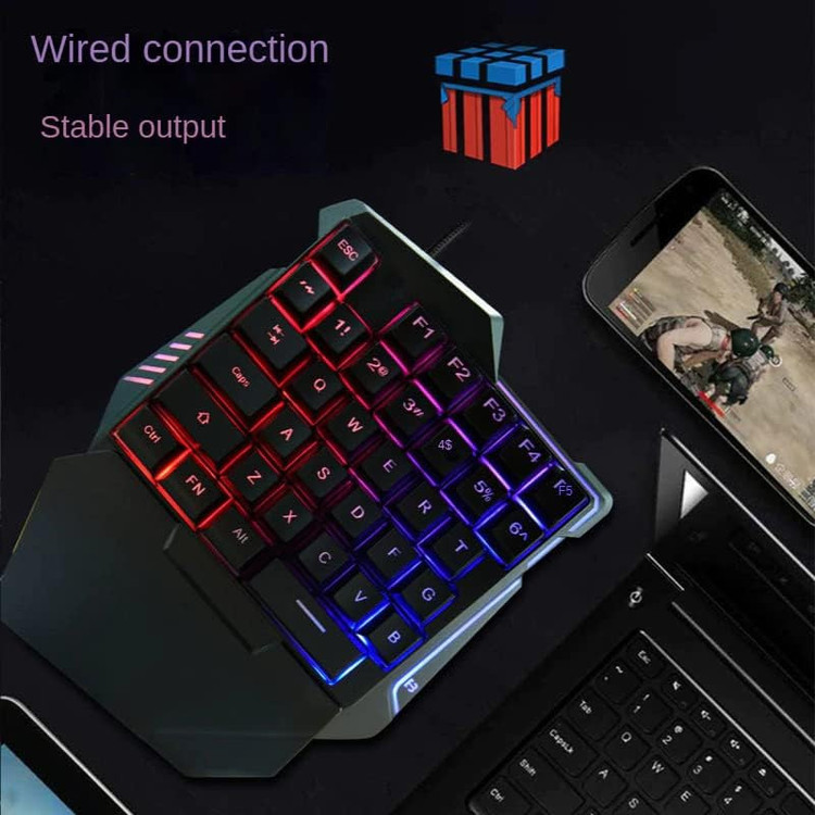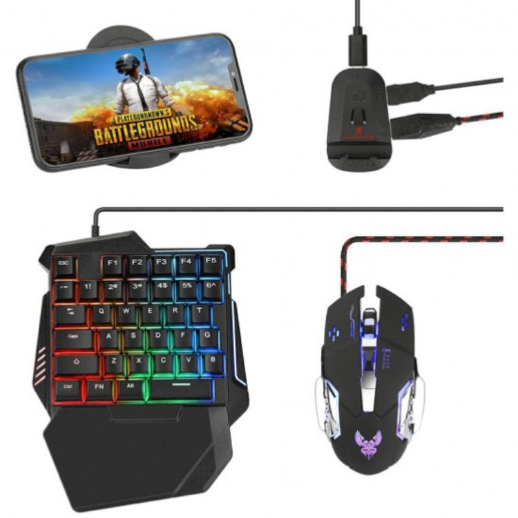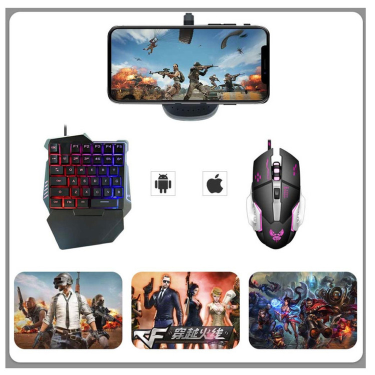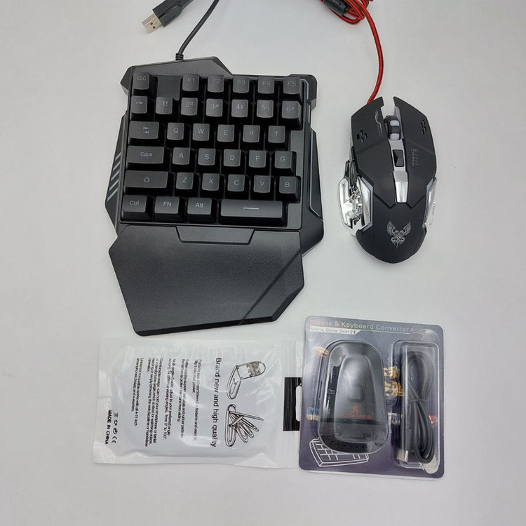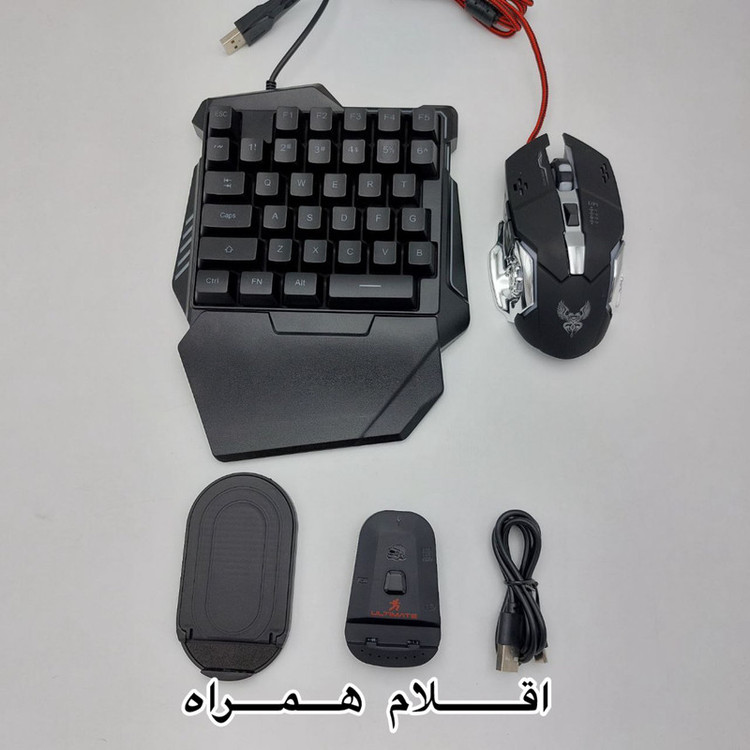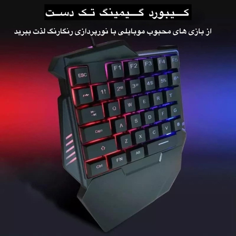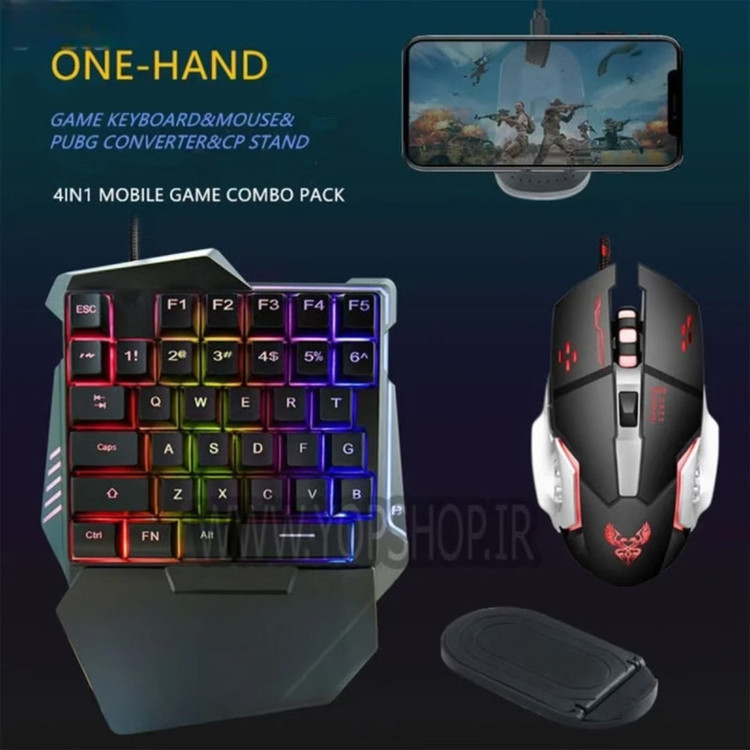 این پک بازی موبایل مدل G508 با عنوان “One-Hand Game Keyboard & Mouse 4 in 1 Combo Pack” طراحی شده است تا تجربه بازیهای موبایل را برای کاربران حرفهایتر و راحتتر کند. این پک شامل چهار جزء اصلی است: کیبورد یک دستی مخصوص بازی: این کیبورد دارای طراحی ارگونومیک است و تنها با کلیدهای اصلی و ضروری بازیها مانند جهتها (WASD)، اعداد (1 تا 5) و چند کلید کنترلی (مانند Ctrl، Alt و Caps) مجهز شده است. این امر به کاربران اجازه میدهد که به سرعت و راحتی بیشتری بازی کنند. این کیبورد مخصوص بازیهای موبایل و همچنین سیستمهای ویندوز، لینوکس، و iOS است. ماوس گیمینگ: ماوس این پک دارای طراحی خاص و نورپردازی داخلی است که علاوه بر جذابیت ظاهری، کنترل بیشتری را برای بازیکنان فراهم میکند. این ماوس دارای دکمههای چندمنظوره است که به بازیکنان امکان انجام حرکات و دستورات پیچیدهتری را میدهد. مبدل موس و کیبورد: این مبدل به کاربران اجازه میدهد که کیبورد و ماوس را به موبایل یا تبلت خود متصل کنند و تجربهای مشابه با بازیهای کامپیوتری را در دستگاههای موبایل خود داشته باشند. این مبدل از طریق رابط USB کار میکند و با سیستمعاملهای مختلف سازگار است. پایه نگهدارنده موبایل: پایهای که برای نگهداشتن موبایل در موقعیت مناسب هنگام بازی طراحی شده و باعث میشود دستگاه ثابت بماند.