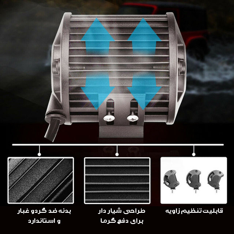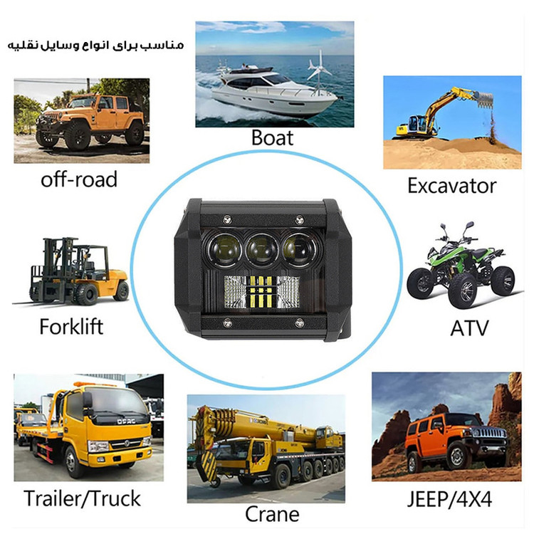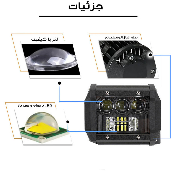سایر توضیحات: دارای نور سفید / مناسب برای خودرو های آفرودی جیپ پاترول پاژن لندرور جک t۸ فوتون وانت پیکاپ و موتور های ادونجری و ... قابل نصب بر روی سپر و باربند