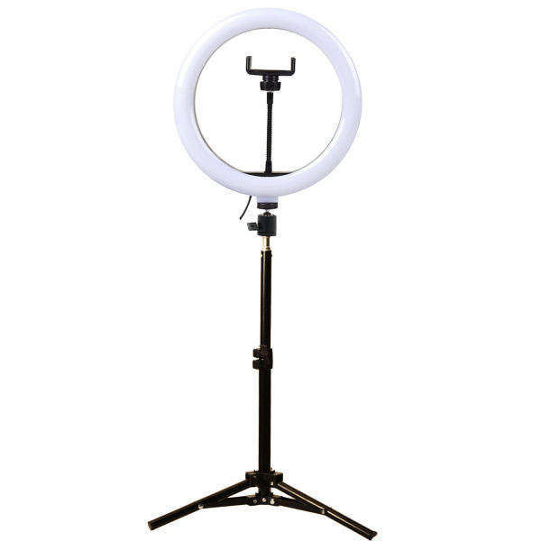 ویژگی ها: -دارای سه حالت نوری مهتابی ، آفتابی و میکس - قطر رینگ 26 سانتی متر - دارای سه پایه با ارتفاع 2 متر و 10 سانت -دارای ریموت با اتصال سیم -دارای نگه دارنده گوشی موبایل -پایه 360 درجه جهت اتصال رینگ لایت به سه پایه