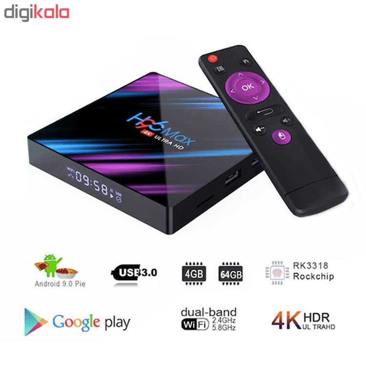 محصول H96 مدل MAX 3318 64/4 یک اندروید باکس است برای هوشمند سازی تلویزیون که با حافظه بزرگ ذخیره سازی 64 گیگابایت eMMC پرسرعت نسل جدید، حافظه ی سیستمی 4 گیگابایتی DDR3 و ظاهری بسیار زیبا، وزن کم و ابعاد کوچک (به طوری که در کف دست به راحتی جا می گیرد)، طراحی شده است. این محصول دارای سیستم عامل اندروید 9.0، پردازشگر مرکزی Rockchip 3318، پردازنده گرافیکی Penta Core Mali-450، پورت شبکه LAN، شبکه وایرلس Dual band (2.4GHz/5.8GHz) IEEE 802.11a/b/g/n/ac، درگاه USB 3.0، پشتیبانی از محتوای تصویری و گرافیکی شگفت انگیز (4K@60fps, H.265(HEVC می باشد. در این اندروید باکس به سادگی، با اتصال گوشی و یا تبلت اندرویدی و یا اپل به همان شبکه وایرلسی که این اندروید باکس به آن متصل می باشد، می توان محتوای تصویری و ویدیویی موبایل و یا تبلت را بر روی صفحه های نمایش بزرگ تلویزیون به صورت وایرلس مشاهده کرد. استفاده از این قابلیت مستلزم نصب اپ های مورد نیاز و یا فعال سازی مجوزهای استفاده توسط کاربر می باشد. از دیگر ویژگی های این محصول، پشتیبانی از فرمت HDR (گستره دینامیکی بالا) در نمایش تصاویر ویدئویی می باشد. این فرمت، تصاویری واقعی تر با عمق رنگ بیشتر ایجاد می کند. در این اندروید باکس همچنین با استفاده از تکنولوژی محدوده رنگ گسترده تر با پشتیبانی از عمق رنگ 10 بیتی به ازای هر رنگ در راستای ایجاد تصاویر با طیف رنگ عالی و سایه روشن های طبیعی به همراه انتقال روان تر نمایش رنگ ها از طیف روشن به تیره، تصاویری خارق العاده خلق می شود. این محصول ابزاری بسیار مناسب برای هوشمند سازی تلویزیون و همچنین استفاده و تماشای آنلاین برنامه های شبکه هایی مانند: فیلیمو، نماوا، آیو و بسیاری از این دست می باشد.