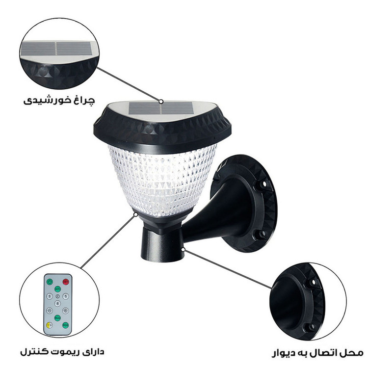چراغ دیواری حیاطی و باغی دارای ریموت کنترل برای تعویض رنگ چراغ و شدت نور