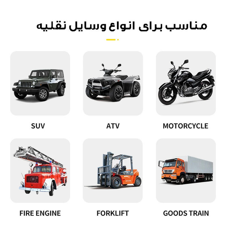 مناسب برای انواع وسایل نقلیه اعم از خودرو و انواع موتور و ماشن های سنگین آفرود دارای نور زرد و ترکیبی