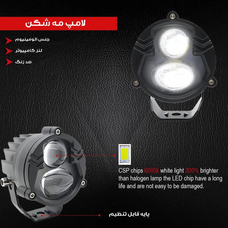 سایر توضیحات: مناسب برای انواع وسایل نقلیه اعم از خودرو و انواع موتور و ماشن های سنگین آفرود دارای نور زرد و ترکیبی