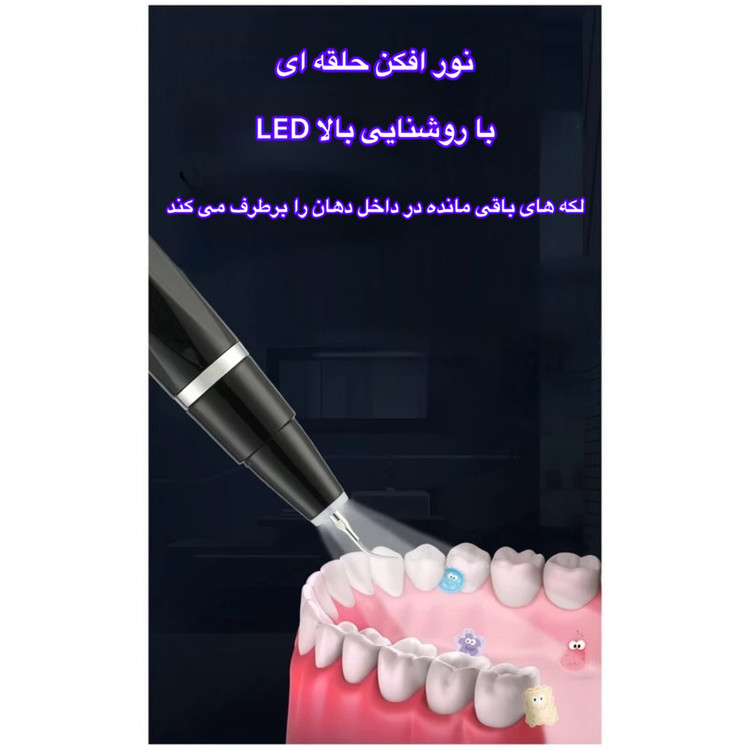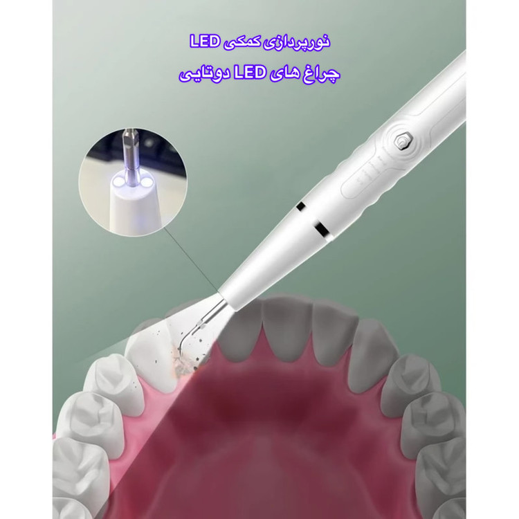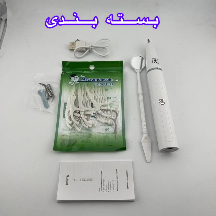 اقلام همراه: 1 عدد دستگاه جرم گیر دندان . 3 عدد سری جرم گیر برای حالت های مختلف . 1 عدد آچار مخصوص . 1 عدد آینه . و 1 عدد سری مسواک مخصوص جرم گیری x کابل شارژ . دفترچه راهنما