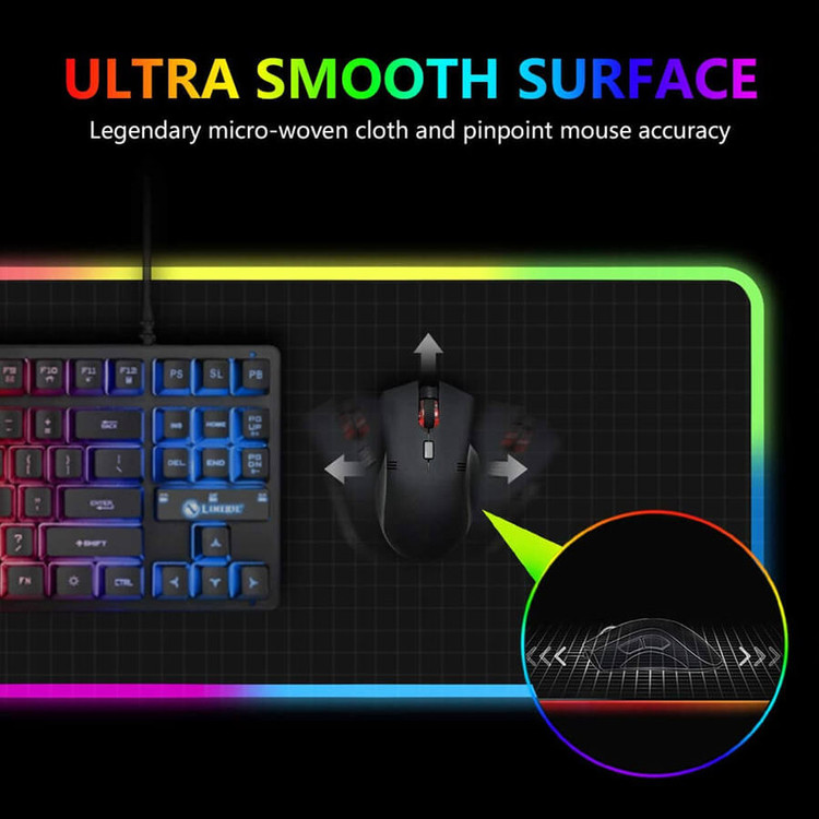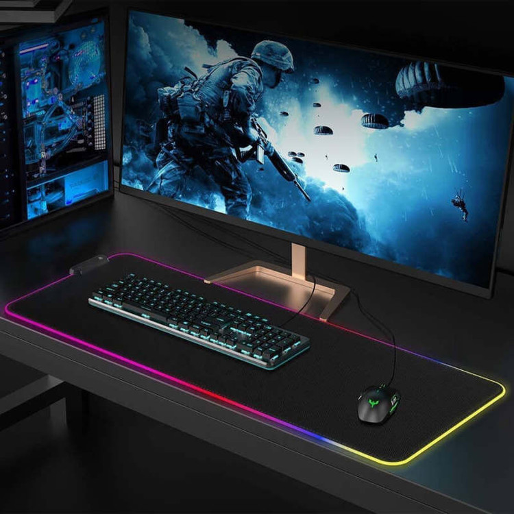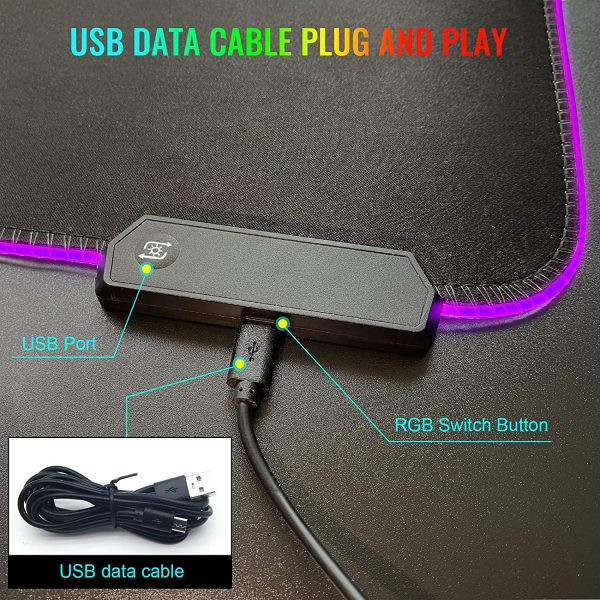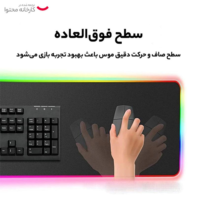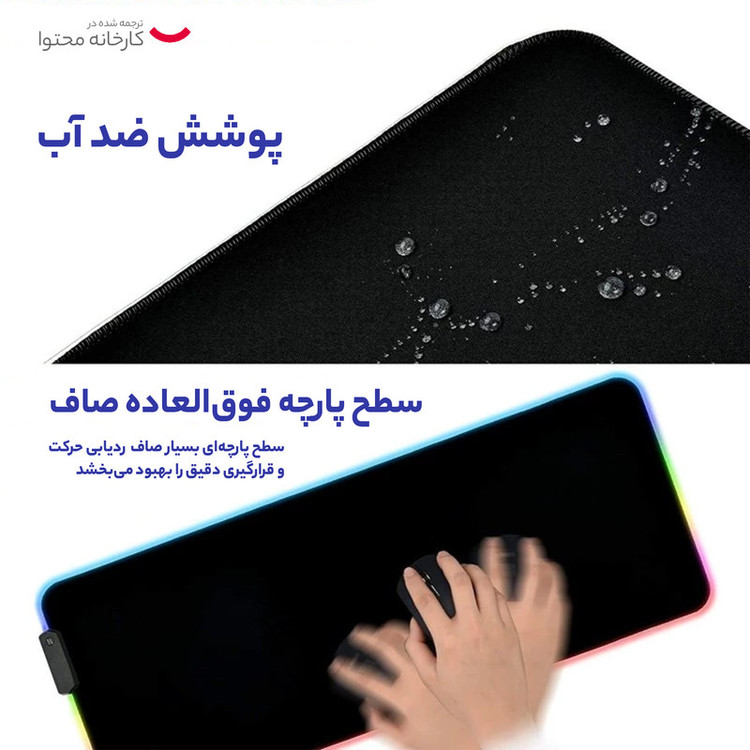 دارای دکمه تنظیم نورپردازی | کابل میکرو یو اس بی به USB | جنس ترکیب پارچه و پلاستیک مرغوب | لبه های دور دوزی شده | پارچه ضد حساسیت | کفی از جنس فوم ضد لغزش