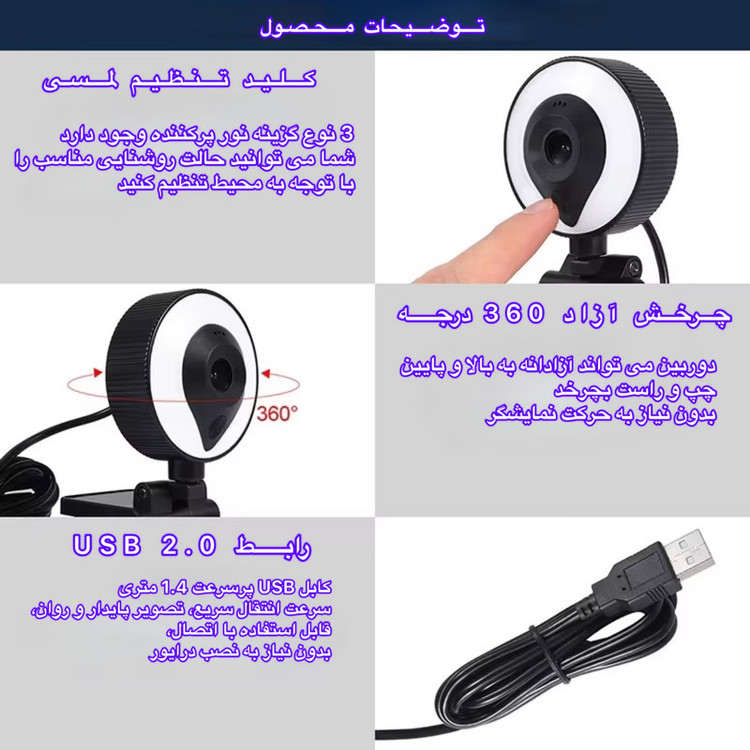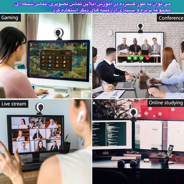 این محصول یک وبکم Full HD با کیفیت 1080P است که برای تماسهای ویدیویی، استریم، آموزش آنلاین، جلسات کاری و تولید محتوا طراحی شده است. این وبکم از یک لنز با کیفیت بالا برخوردار است که تصویری واضح و شفاف ارائه میدهد و به لطف قابلیت تنظیم دستی فوکوس، کاربران میتوانند وضوح تصویر را متناسب با نیاز خود تنظیم کنند. یکی از ویژگیهای برجسته این وبکم، میکروفون داخلی آن است که صدای محیط را بهطور شفاف و واضح ضبط میکند، بنابراین نیازی به خرید میکروفون جداگانه برای مکالمات آنلاین یا ضبط محتوا نخواهید داشت. همچنین، طراحی آن شامل حلقه نور (رینگ لایت) داخلی است که باعث بهبود روشنایی تصویر در محیطهای کمنور شده و کیفیت تصویر را افزایش میدهد. این ویژگی بهویژه برای استریمرها، تولیدکنندگان محتوا و افرادی که در شرایط نوری نامناسب کار میکنند بسیار کاربردی است. از دیگر قابلیتهای این وبکم میتوان به پشتیبانی از زیباسازی تصویر اشاره کرد که کیفیت تصویر را بهبود داده و چهره کاربران را طبیعیتر و شفافتر نمایش میدهد. علاوه بر این، محصول دارای یک پایه چندکاره است که امکان قرارگیری روی مانیتور، میز و سایر سطوح را فراهم میکند، بهطوریکه میتوان آن را بهراحتی در بهترین زاویه تنظیم کرد. این وبکم از طریق اتصال USB به کامپیوتر یا لپتاپ متصل شده و بدون نیاز به نصب درایور یا نرمافزار خاصی، بلافاصله پس از اتصال قابل استفاده است. این ویژگی باعث میشود که محصول برای افرادی که به یک وبکم ساده، سریع و کارآمد نیاز دارند، گزینهای ایدهآل باشد. با توجه به مشخصات فنی و قابلیتهای این محصول، میتوان آن را یک گزینه مناسب برای افرادی که به یک وبکم حرفهای، باکیفیت و مقرونبهصرفه نیاز دارند، دانست.