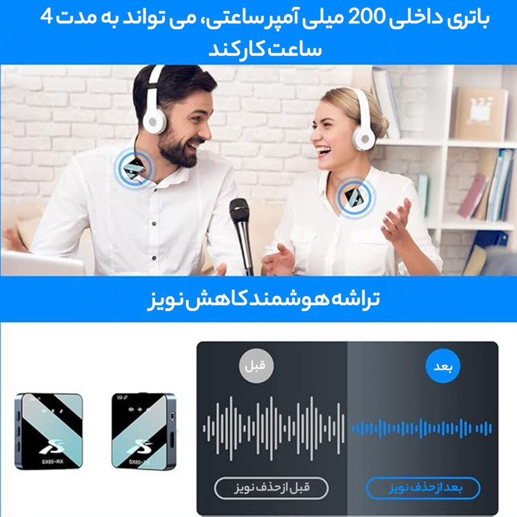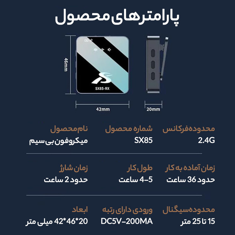 برای شارژ دو میکروفن و قطعه گیرنده میتوانید از کلیه شارژرهای موبایل و usb با خروجی 5 ولت و شدت جریان حداکثر 2 آمپر استفاده کنید. از شارژرهای فست شاررژ برای شارژ این ست استقاده نکنید . شارژ اولیه 90 دقیقه میباشد .